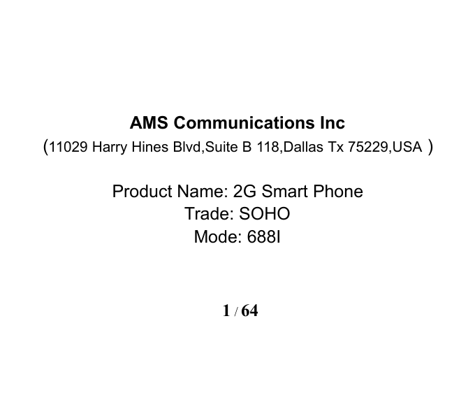 AMS Communications 688I 2G Smart Phone User Manual