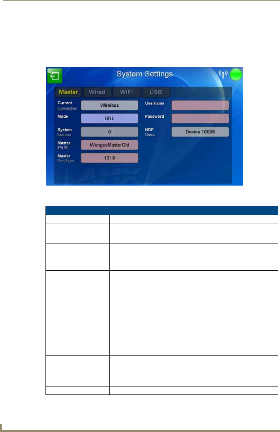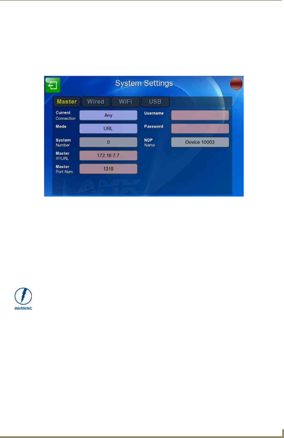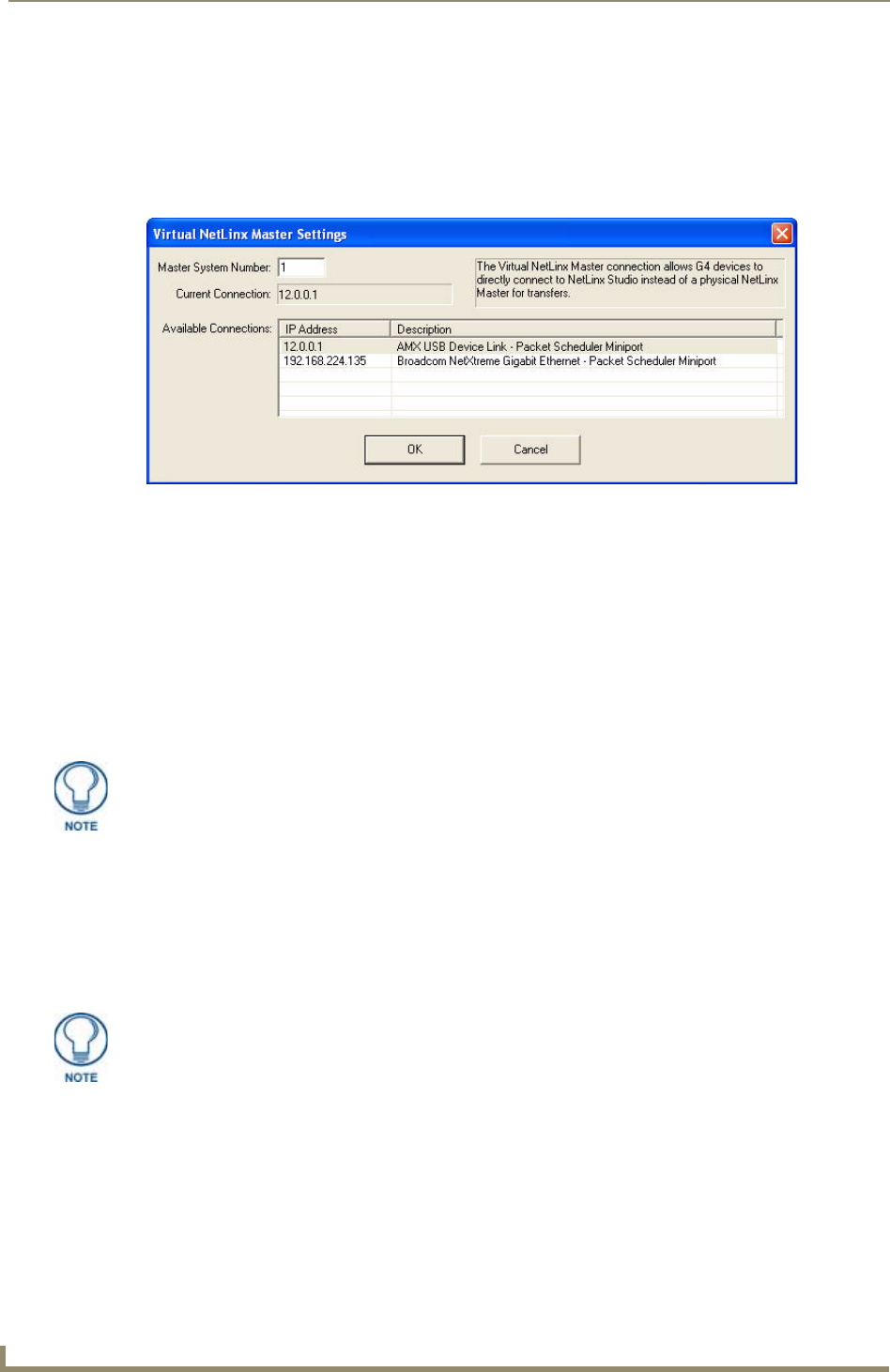 2. Verify the proper NetLinx Master IP and connection methods entered into the Master Connection section