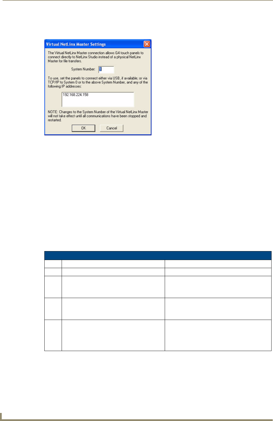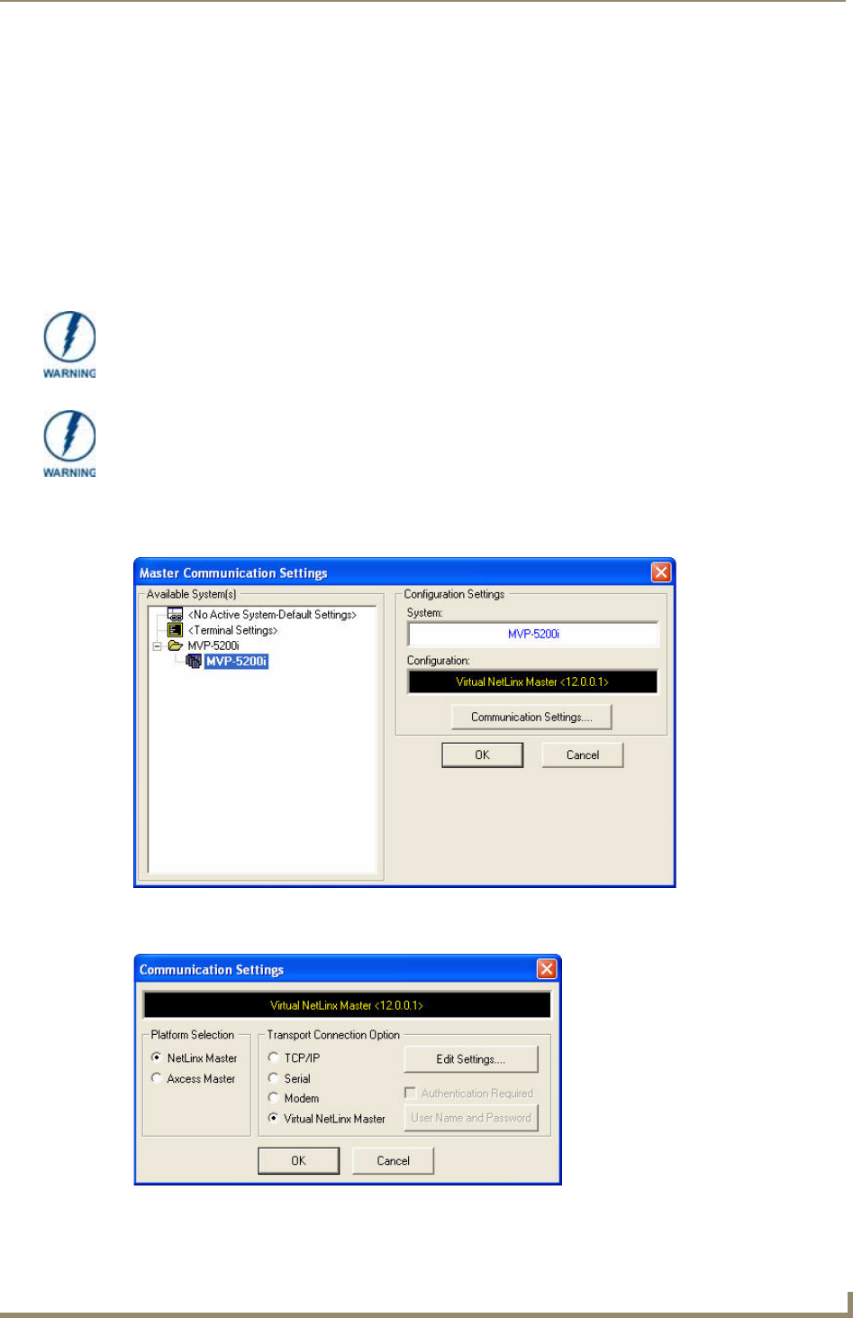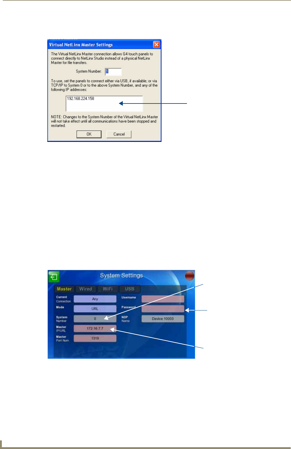 2. Verify the proper NetLinx Master IP and connection methods entered into the Master Connection section