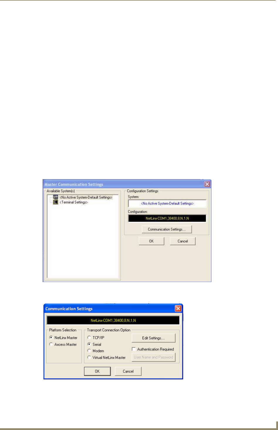 When connecting to a NetLinx Master controller via TCP/IP, the program will first try to ping the controller