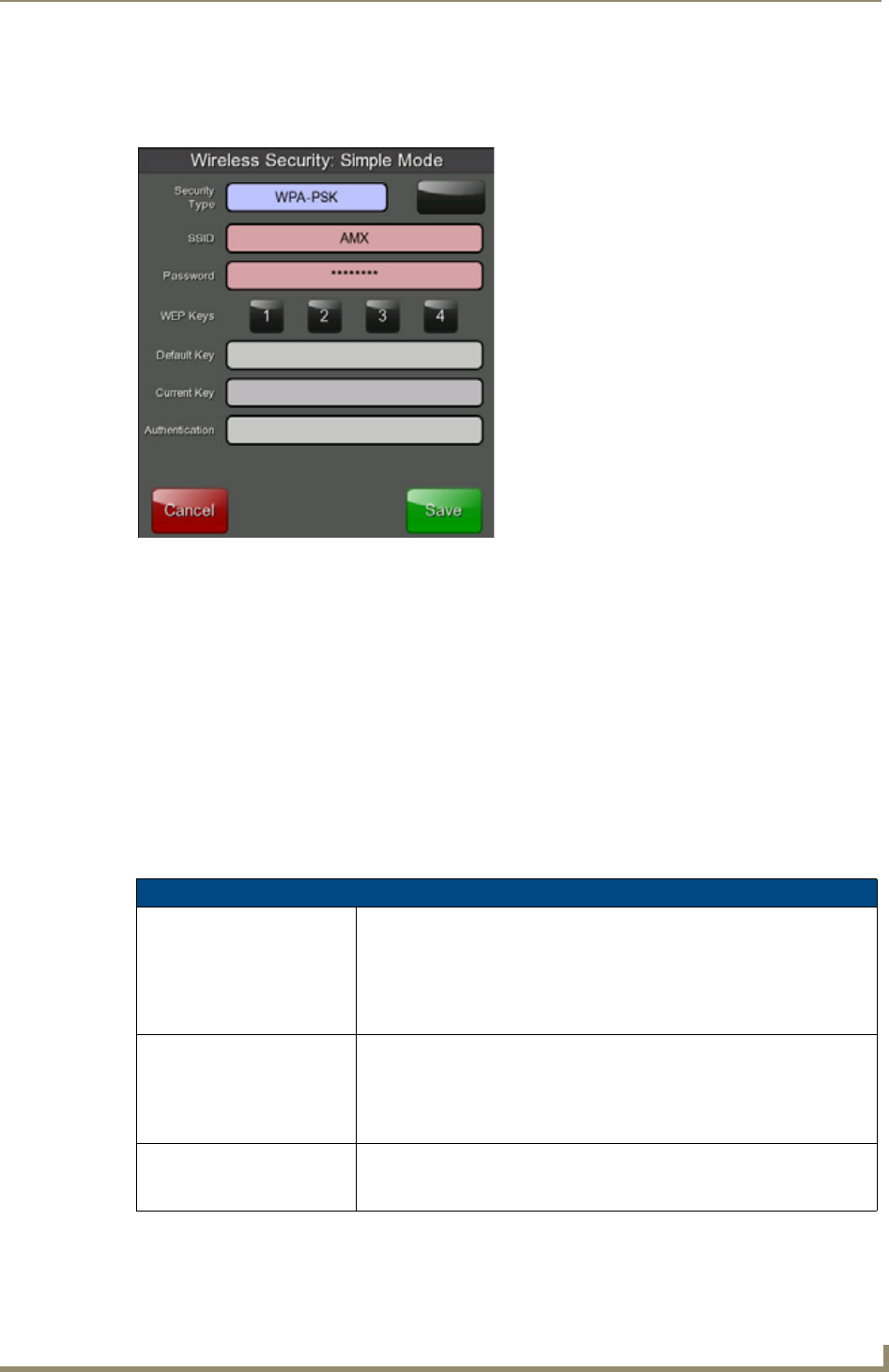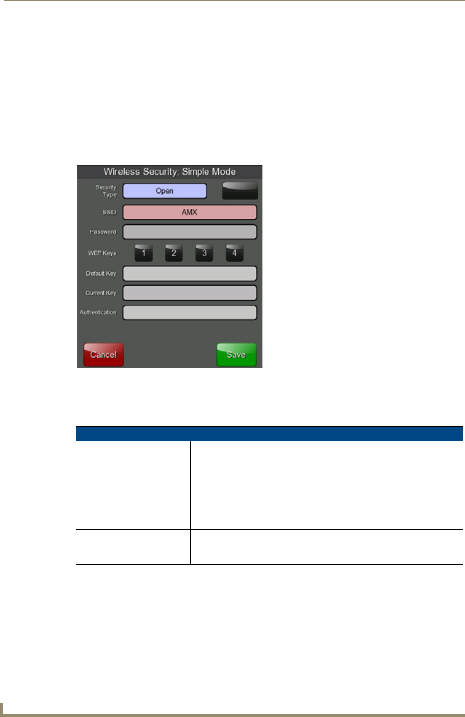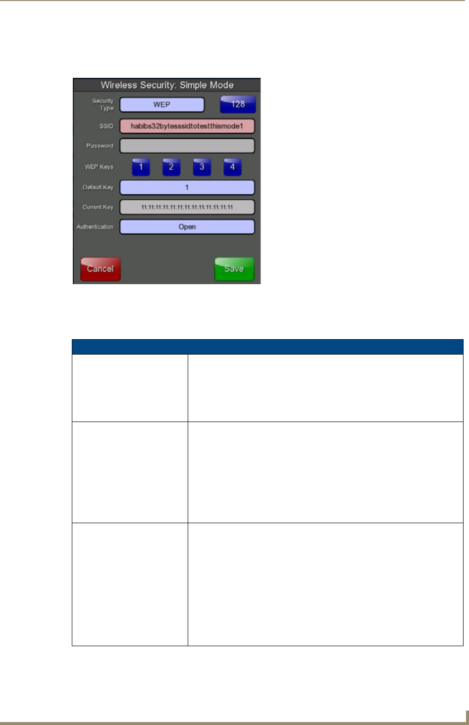 Example: If the access point was set to default WEP key 4 (which was 01:02:03:04:05), the Modero’s Default