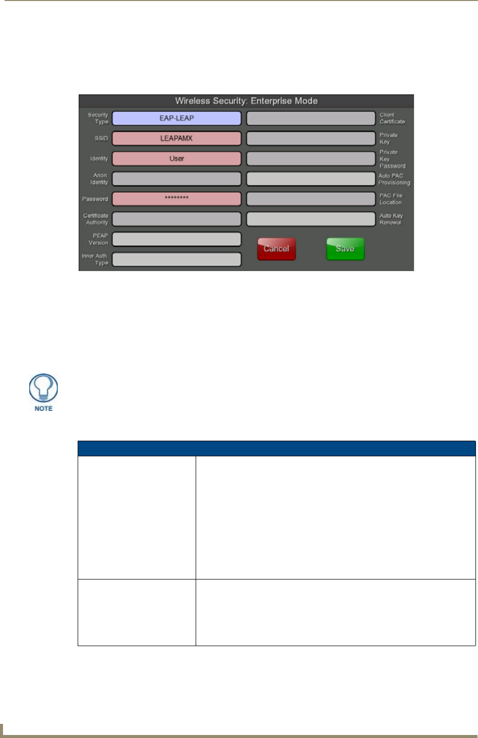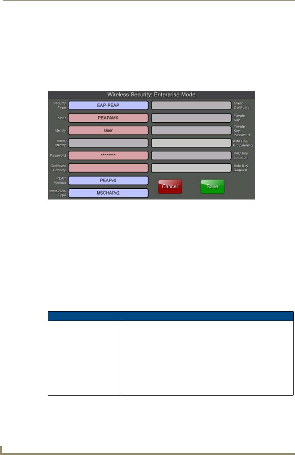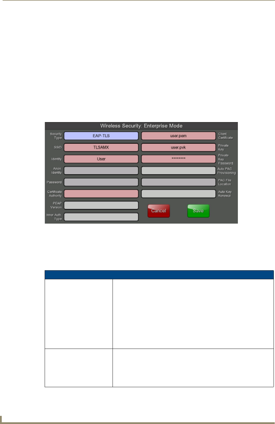 Example: If the access point was set to default WEP key 4 (which was 01:02:03:04:05), the Modero’s Default