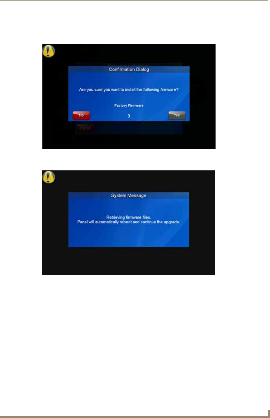 3. Connect the power supply to the panel. You will see 2 warning messages on the display.