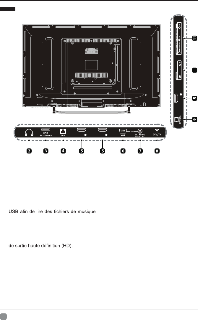• N’obstruez pas les orices de ventilation sur le panneau arrière. Vous pouvez placer le téléviseur dans un meuble,