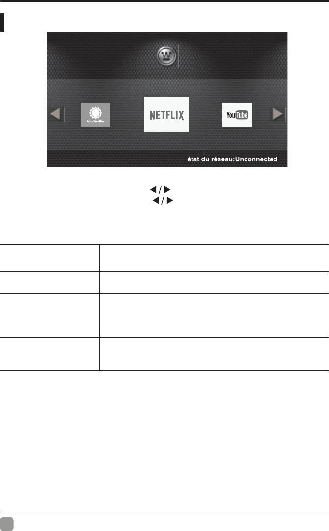 bouton OK pour entrer. Utilisez pour sélectionner l'application souhaitée. Ou