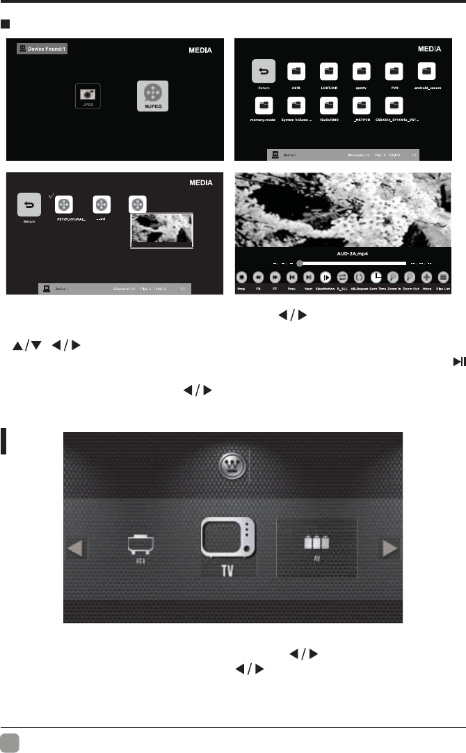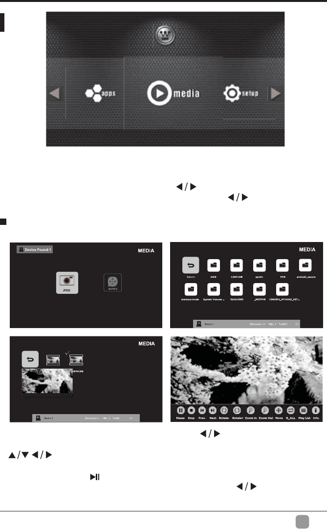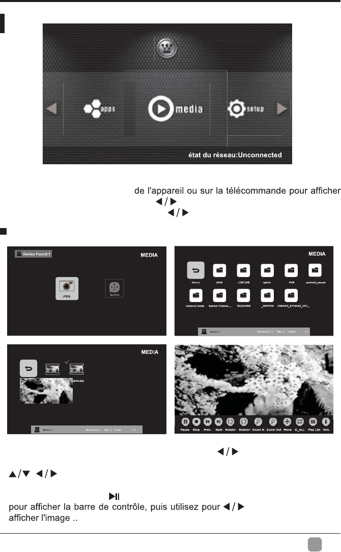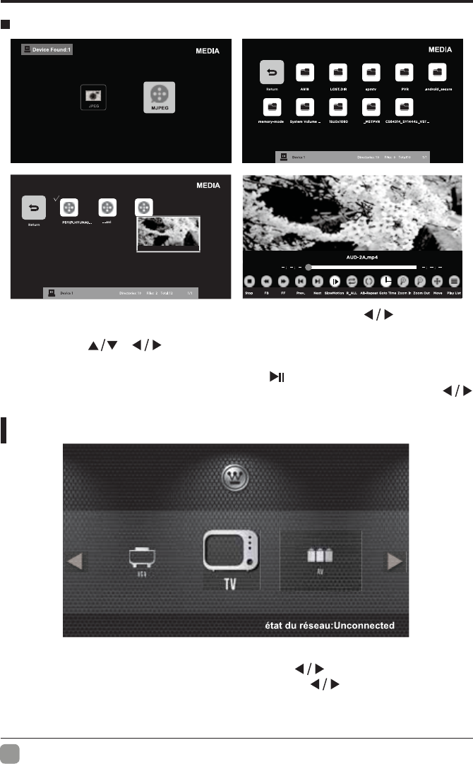 Après avoir entré MÉDIA, appuyez sur les boutons pour sélectionner