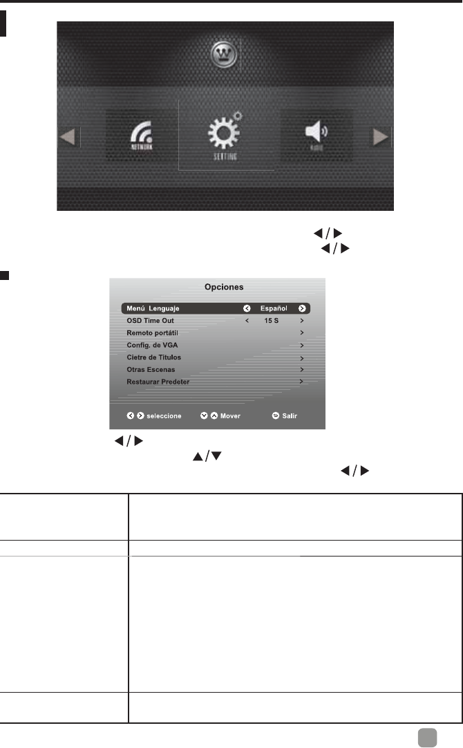 Langue Menu Choisir la langue du menu: Anglais, Français ou Español.
