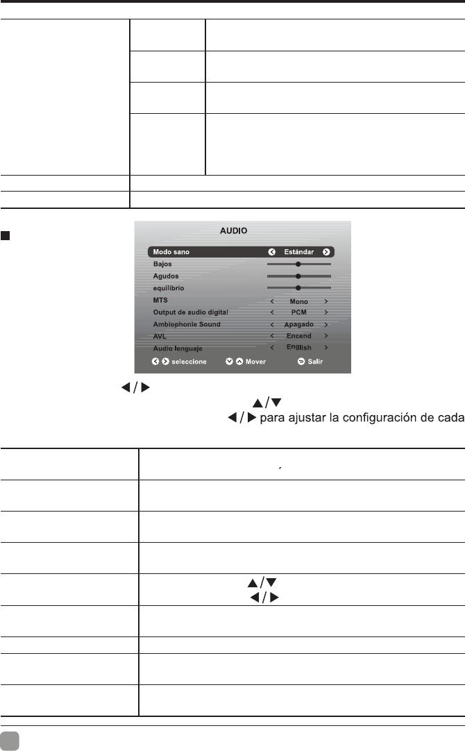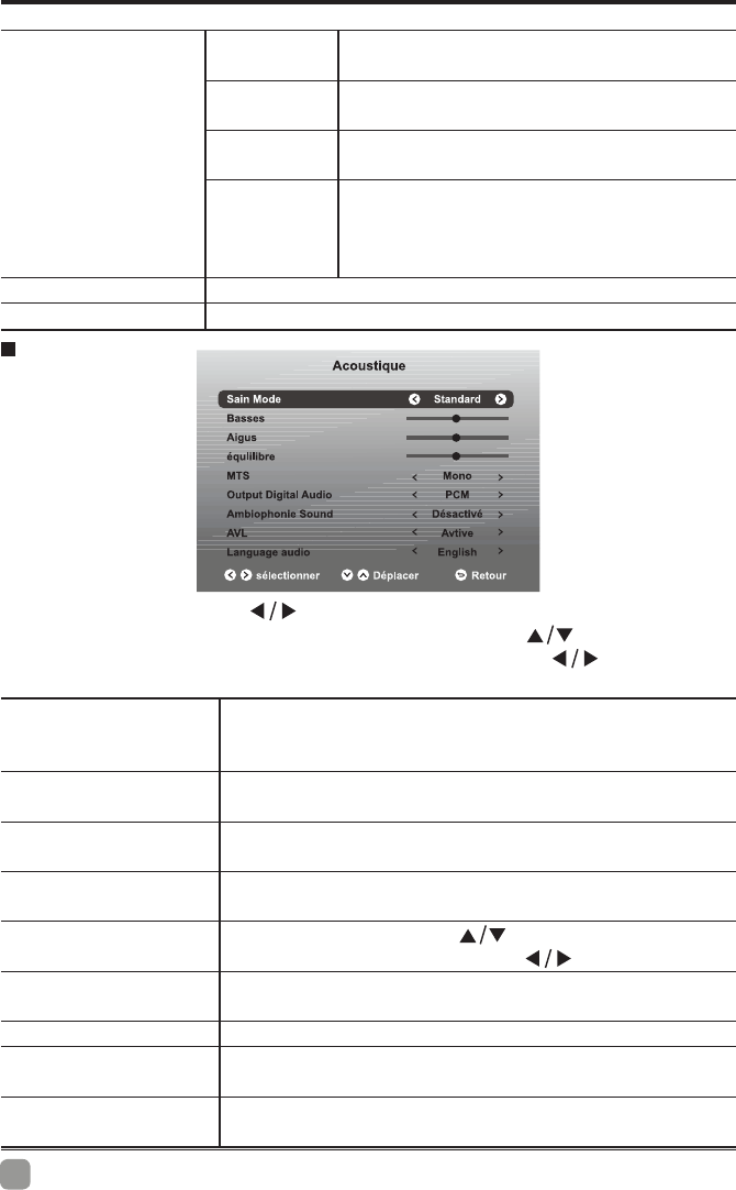 Appuyez sur les boutons pour sélectionner le menu AUDIO puis appuyez