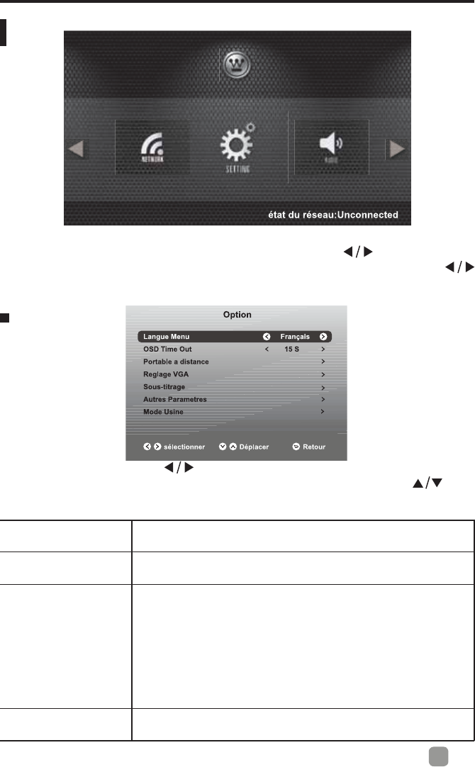 Appuyez sur le bouton de menu sur l’unité principale ou sur la télécommande