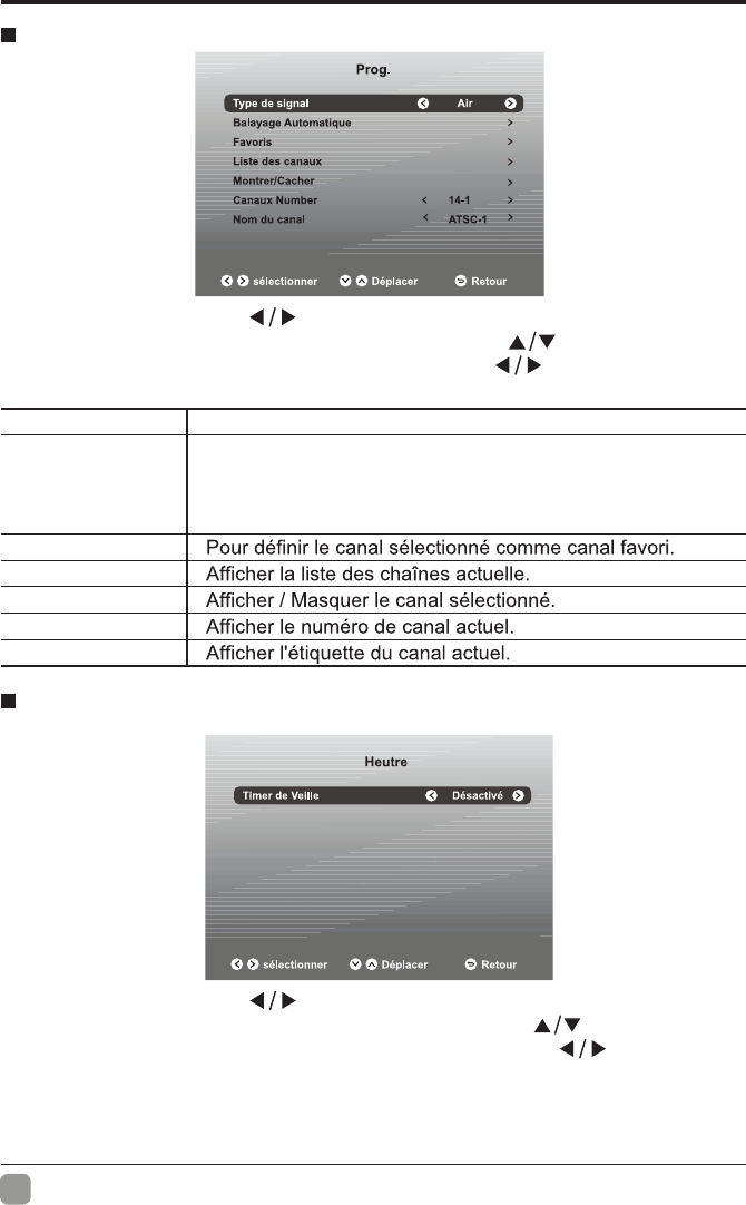 Appuyez sur les boutons pour sélectionner le menu de RÉGLAGE, puis