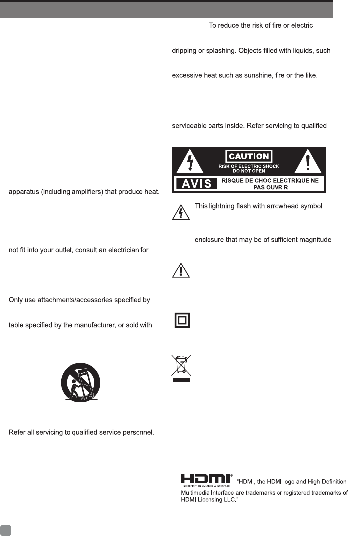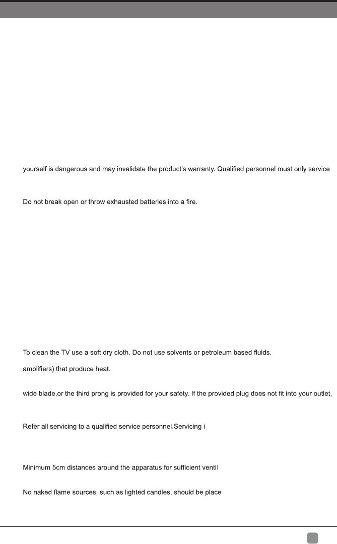• Do not place your TV in direct sunlight or near a heat source.