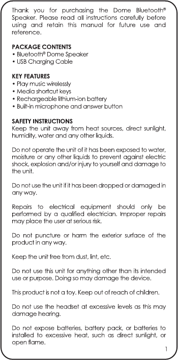 SHENZHEN AOB ELECTRONICS CO.,LTD Bluetooth Speaker HY 14002 Manual 20140903 OL