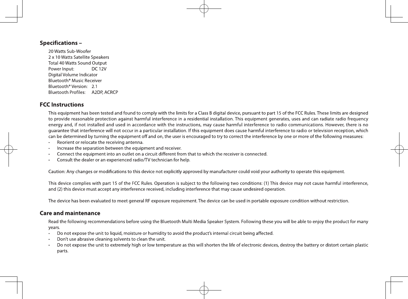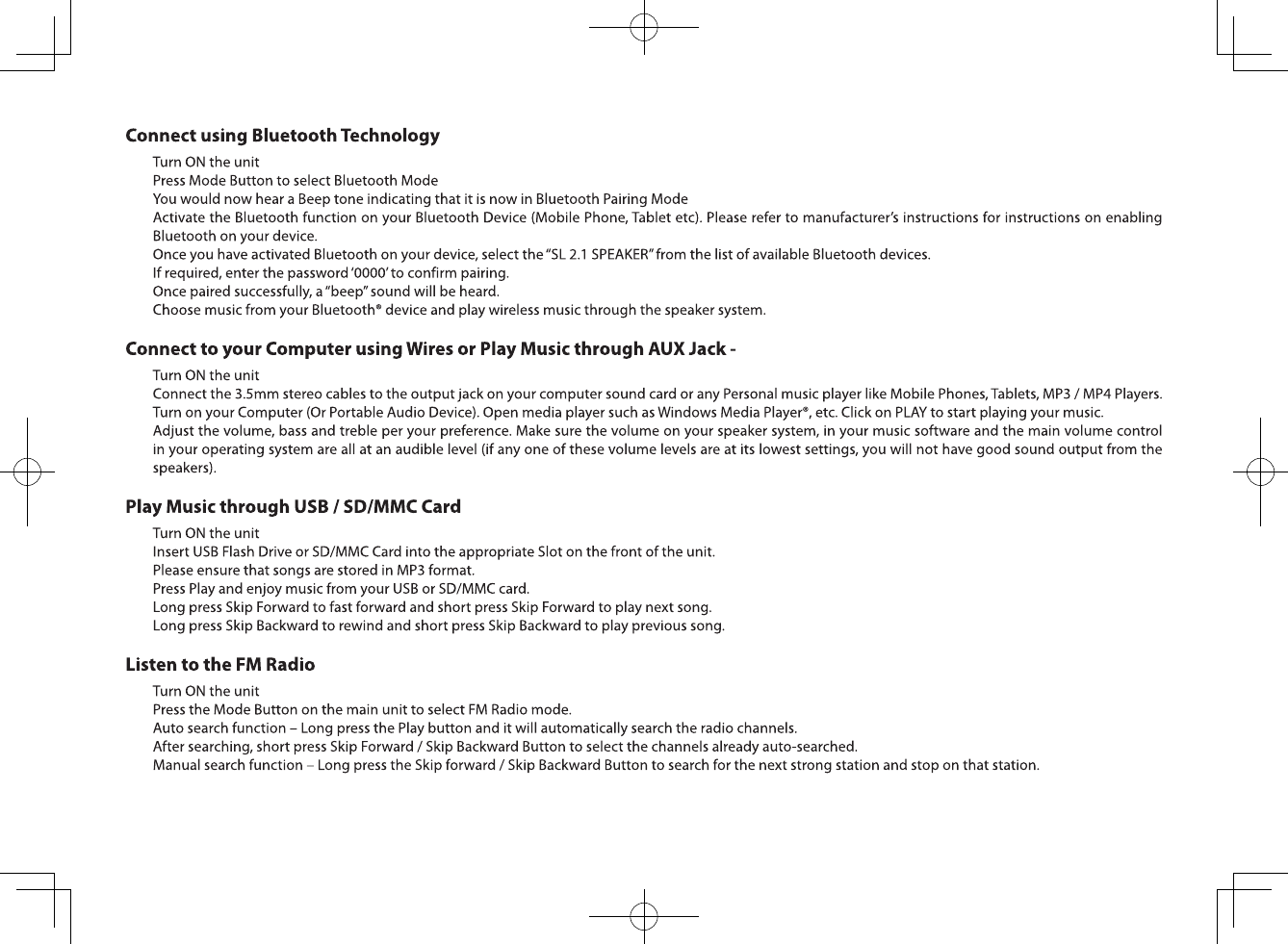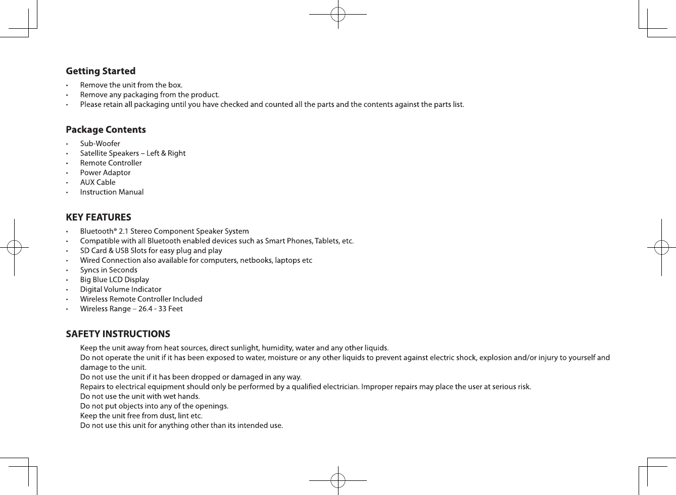 AOB ELECTRONICS ES-21010 Bluetooth 2.1 Stereo Component Speaker System User Manual