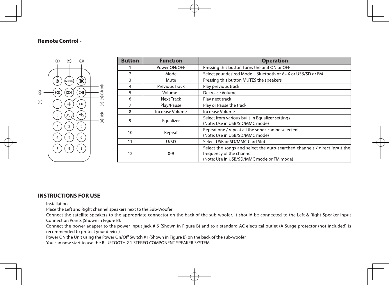(Note: Use in USB/SD/MMC mode or FM mode)