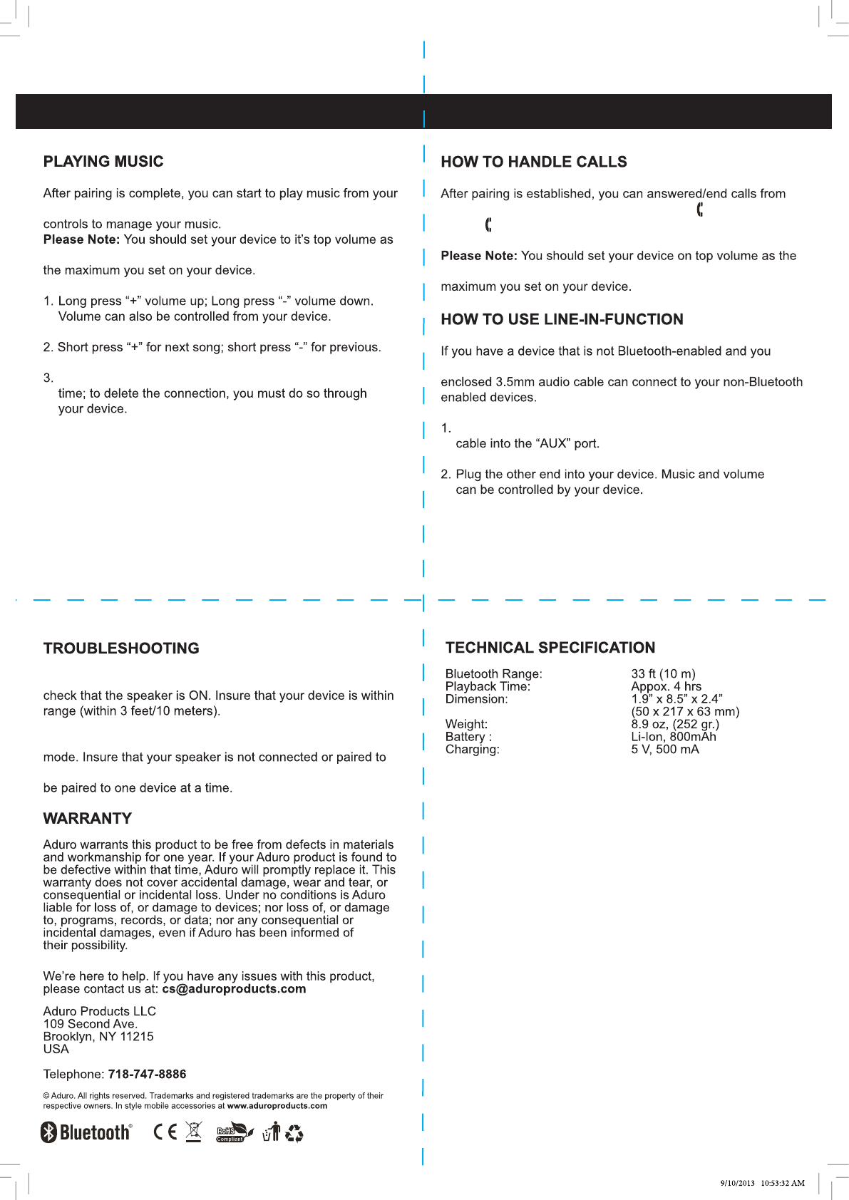 any other Bluetooth device as the speaker can only FCC Warning: