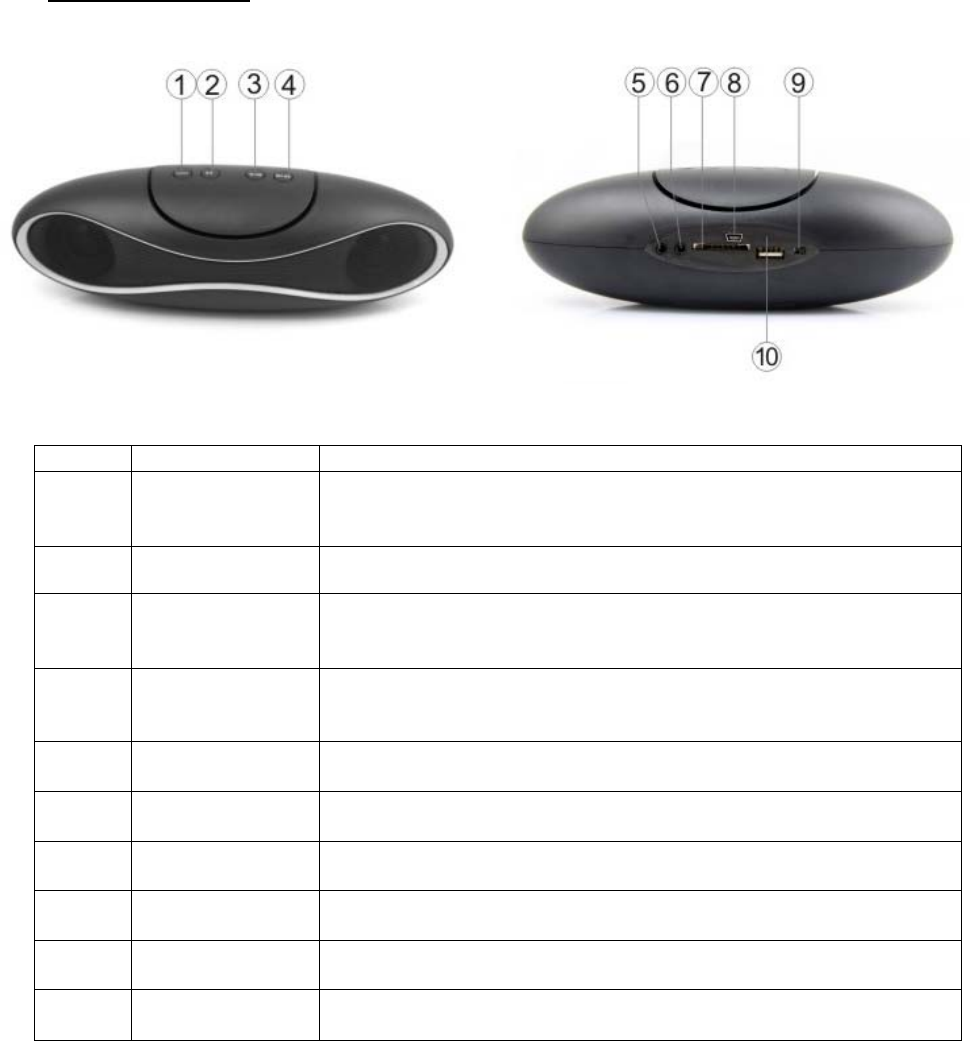 7 SD Card Slot Insert SD Card into this slot to stream music through SD Card