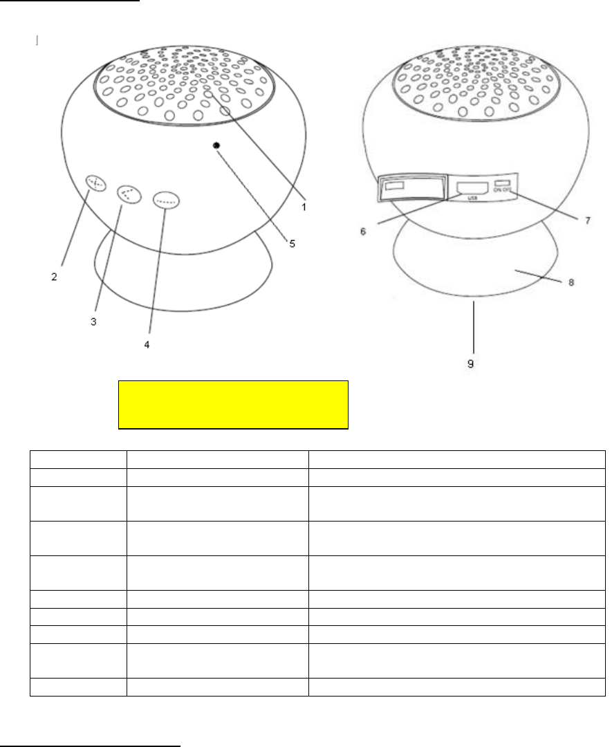 3 Play / Pause button Play / Pause / Answer phone call / End