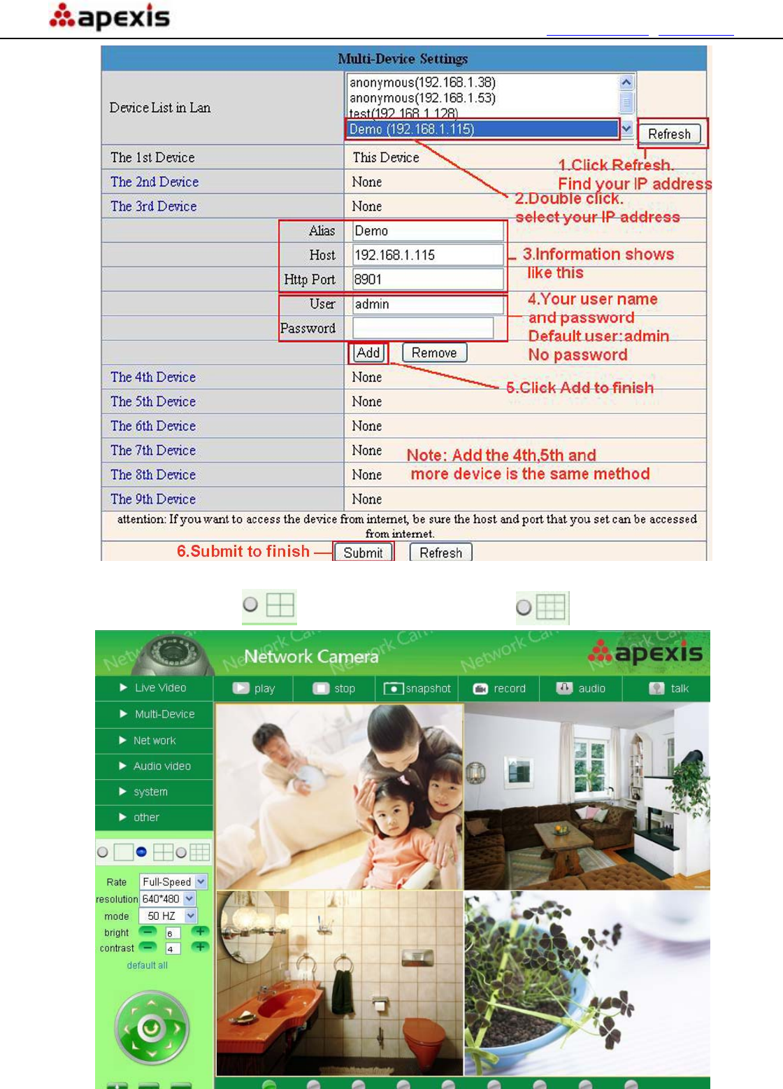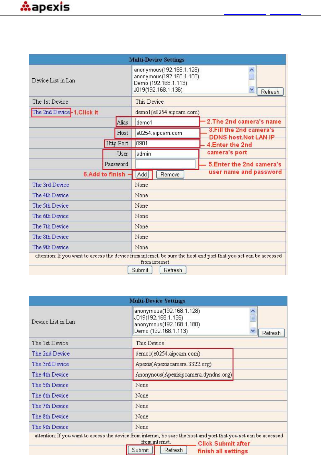 When you set multiple cameras, the device status light change to yellow , then please make sure the