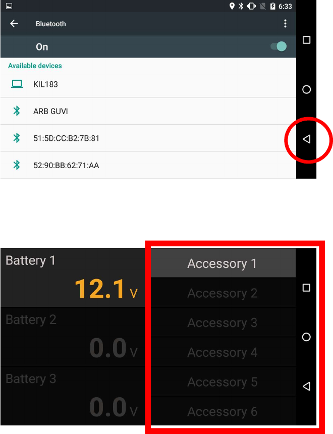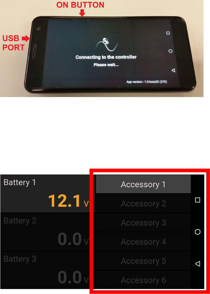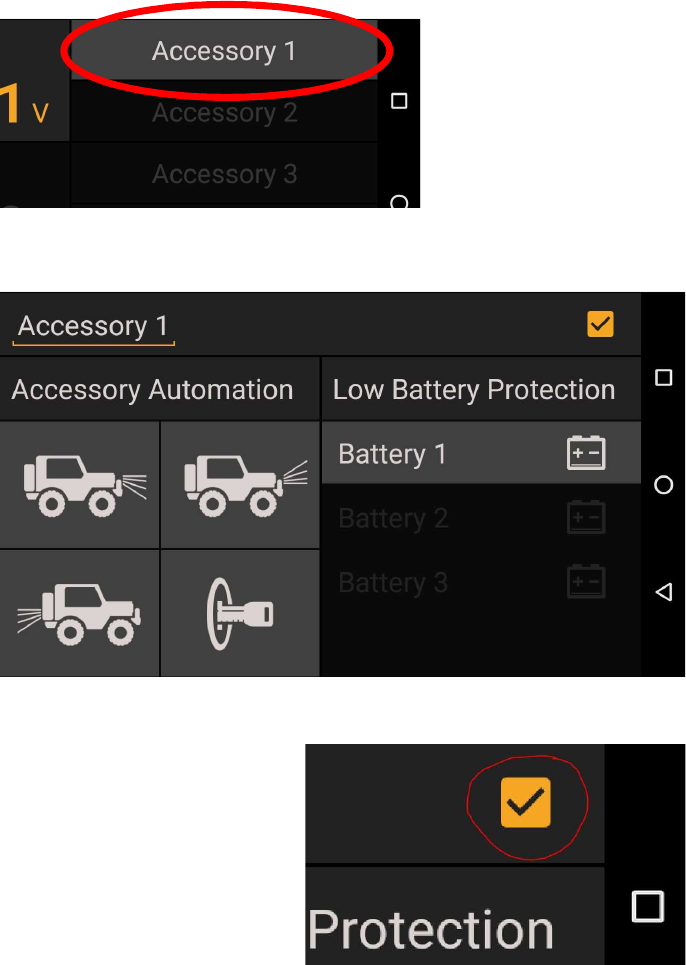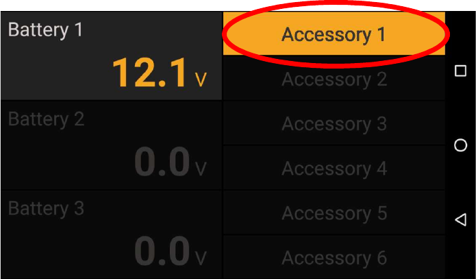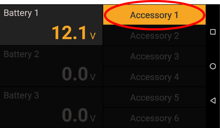 10. Turn on Accessory 1 by pressing it (short pressing only). It should highlight to indicate that it