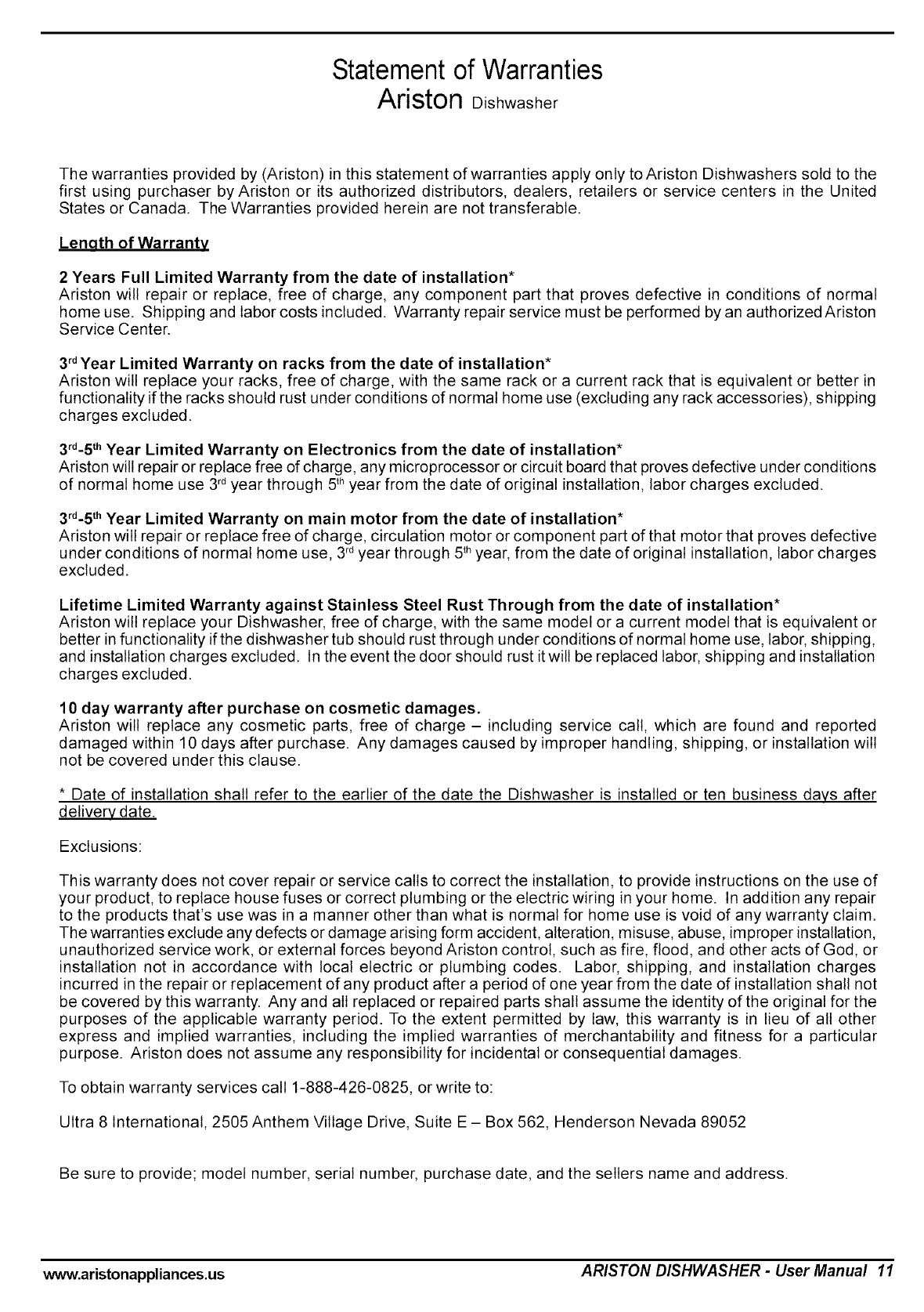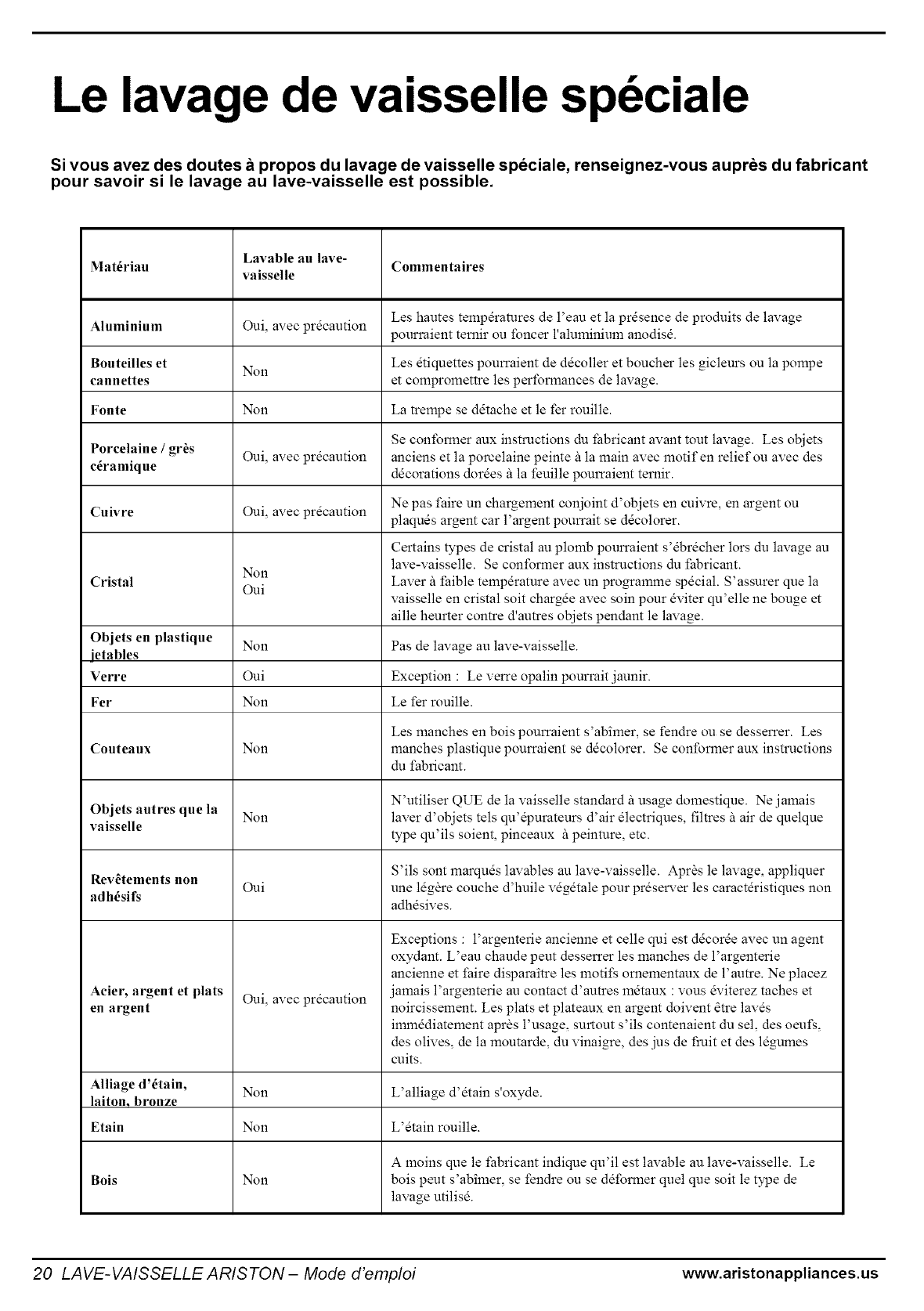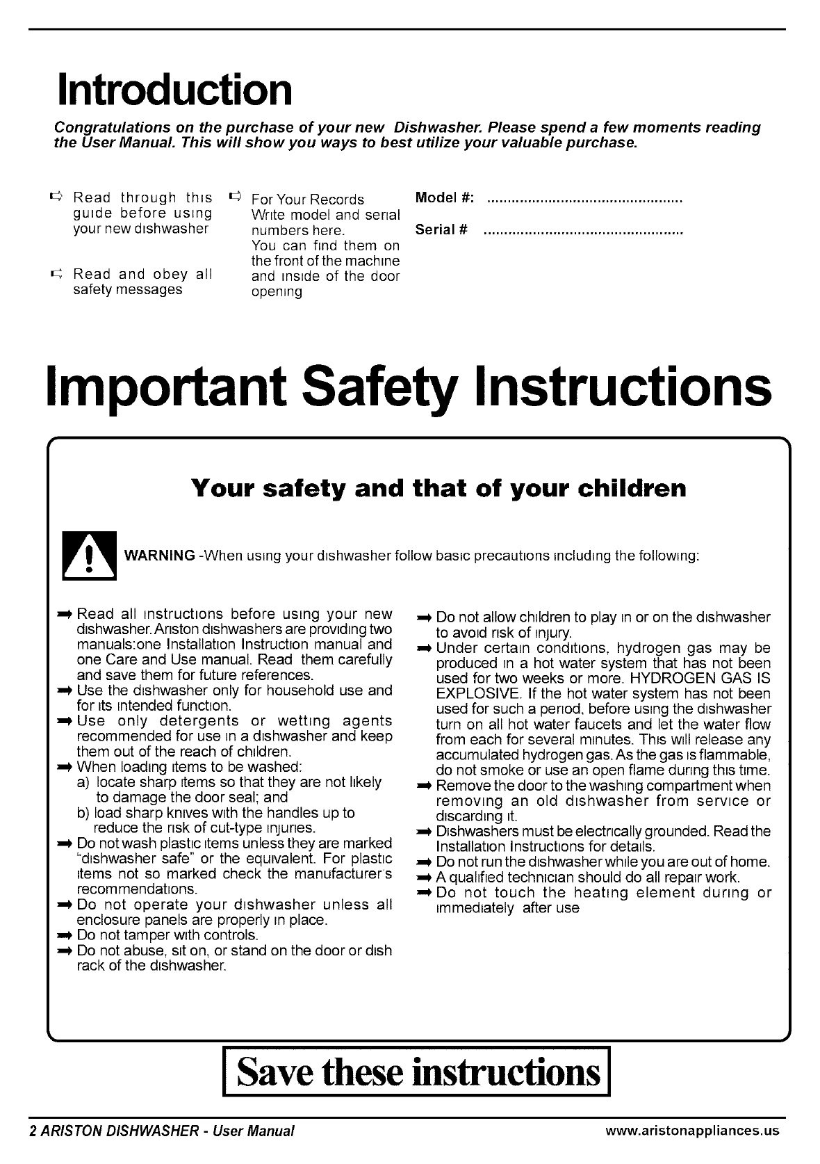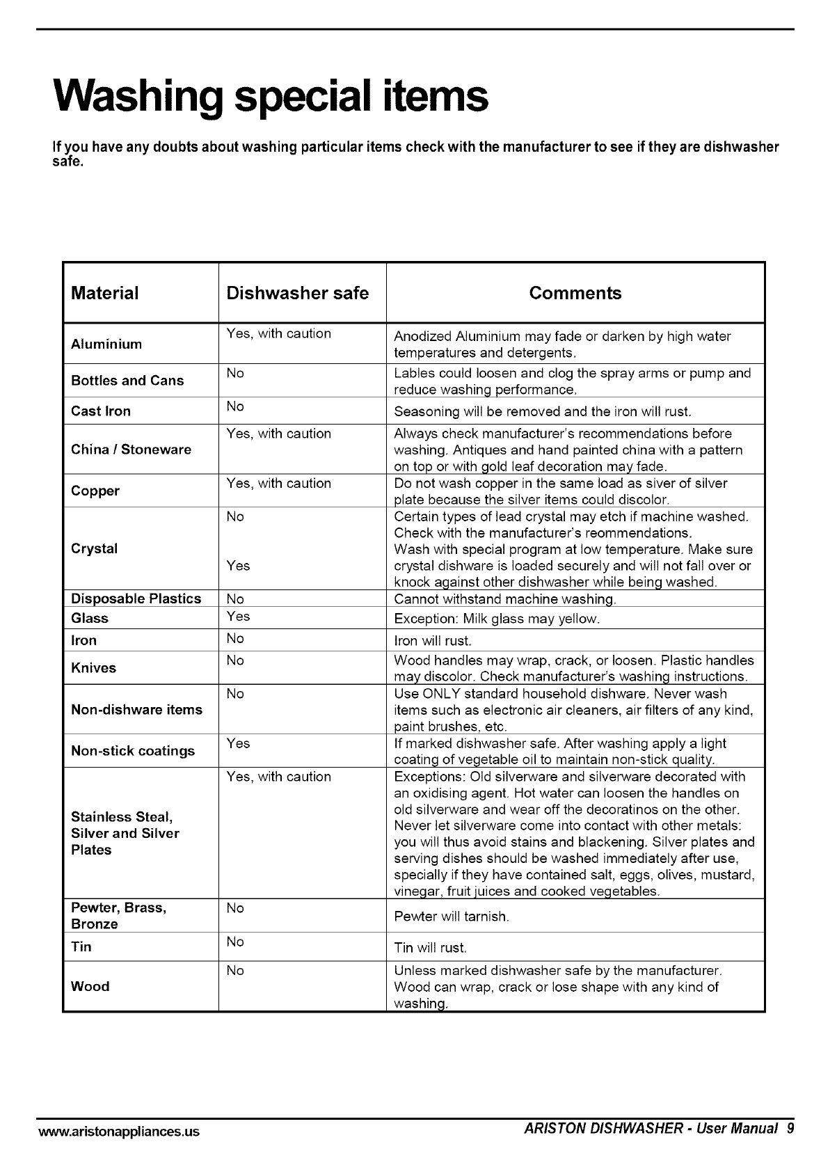 www.aristonappliances.us ARISTON DISHWASHER - User Manual 1
