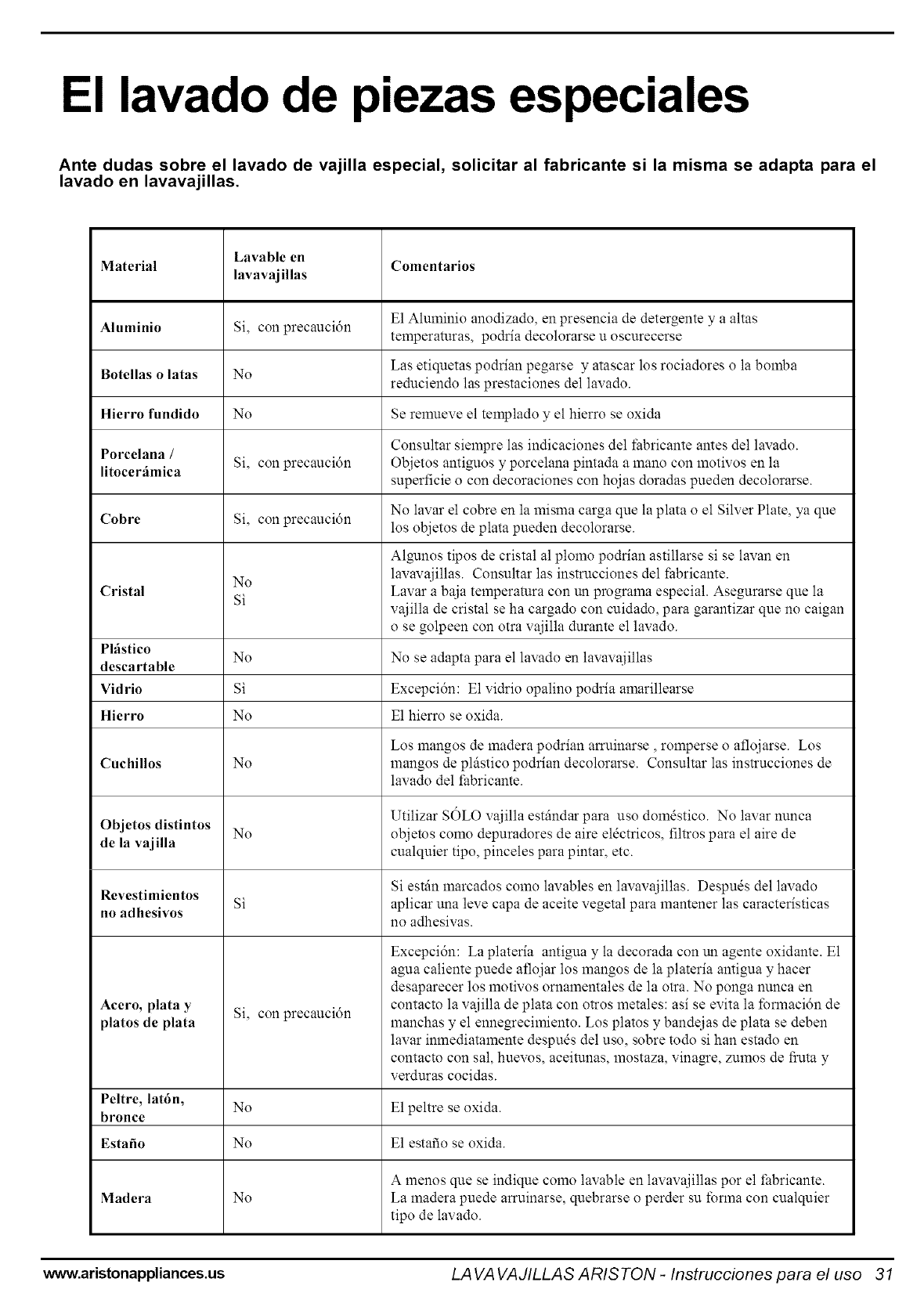 www.aristonappliances.us LAVA VAJILLAS ARIS TON -Instrucciones para el uso 33