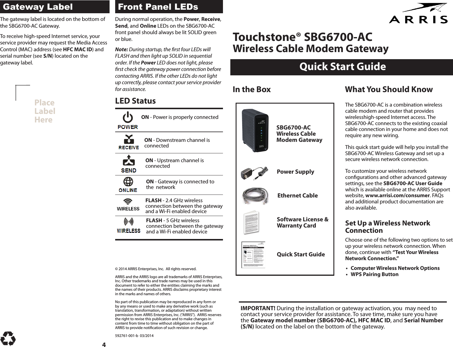 ARRIS Group, Inc. Dual band Access Point Quick Start Guide 592761 001 b