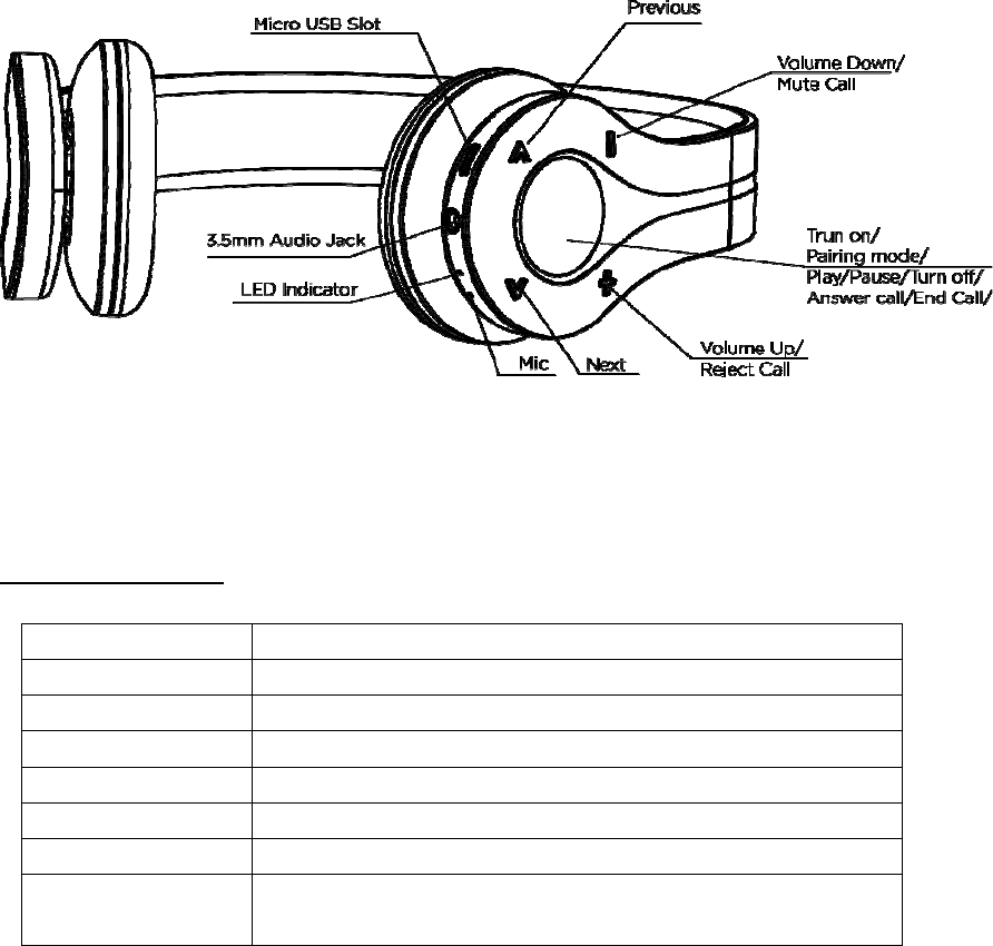 Play/Pause: Short press multifunction button, music pause. Press it again, music