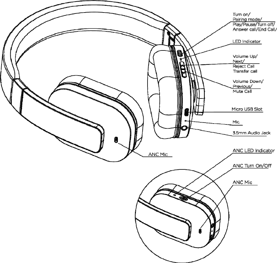 1, 1 X Stereo Bluetooth ANC headphone “F5AS”