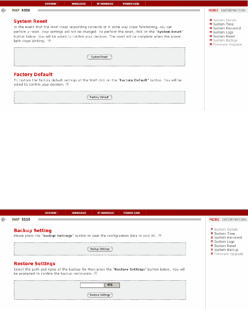 submenu “SYSTEM-> Backup”, a page as Figure 6 will be shown.