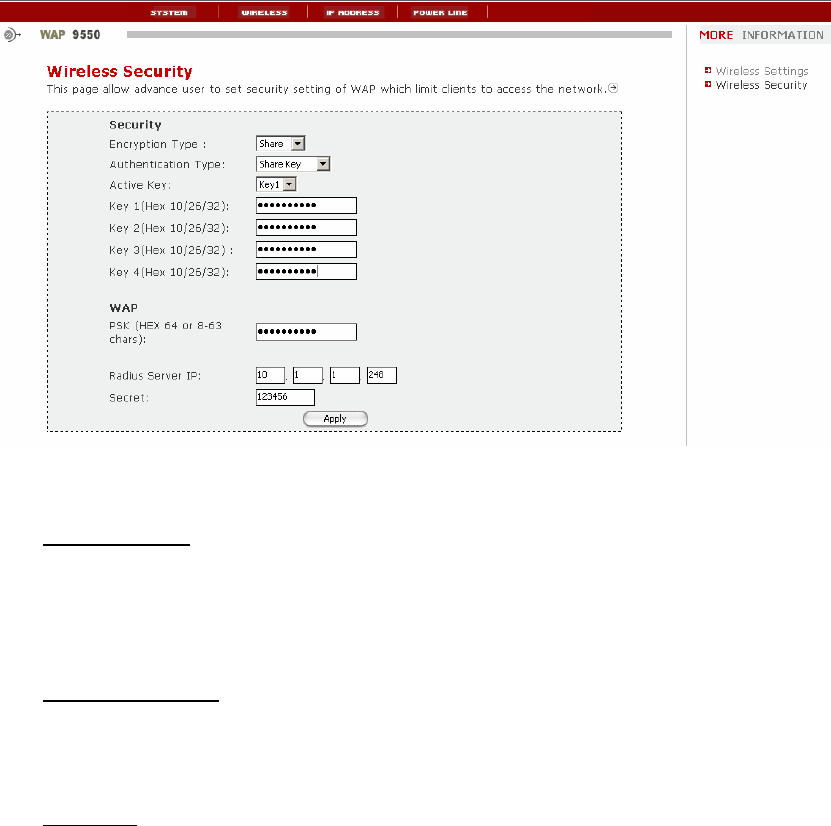 Wireless Menu provides the interface for advanced administer to set the Wireless AP