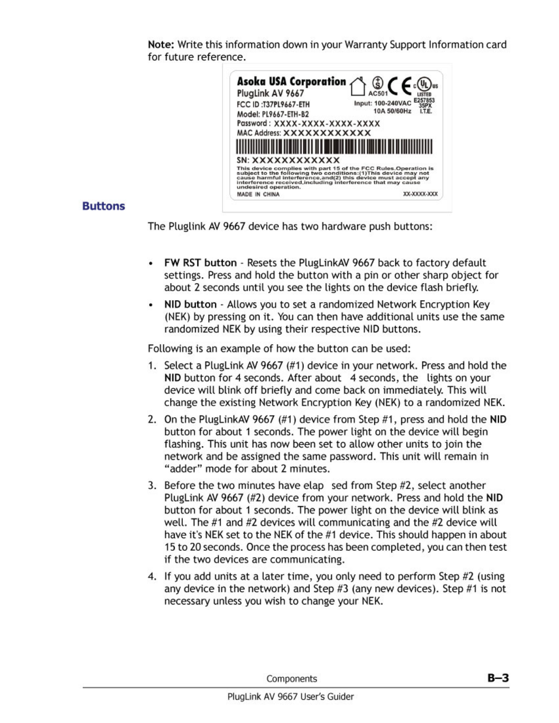 ASOKA USA PL9667-ETH PLUGLINK AV 9667 User Manual PL9667 For Us Plug