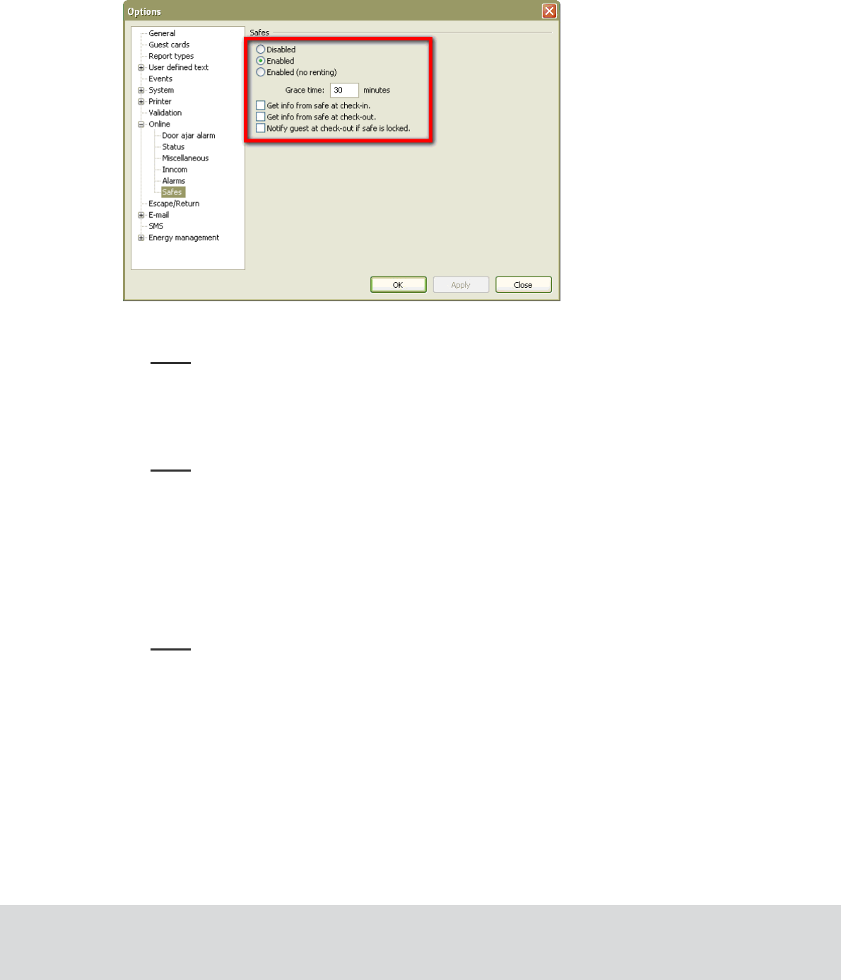 If ‘Notify guest at check-out if safe is locked’ has been marked according to section 4.1.2, the guest will at