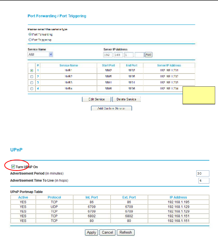 5. Set port forwarding in router. Set different port for different NVR and port forwarding separately.