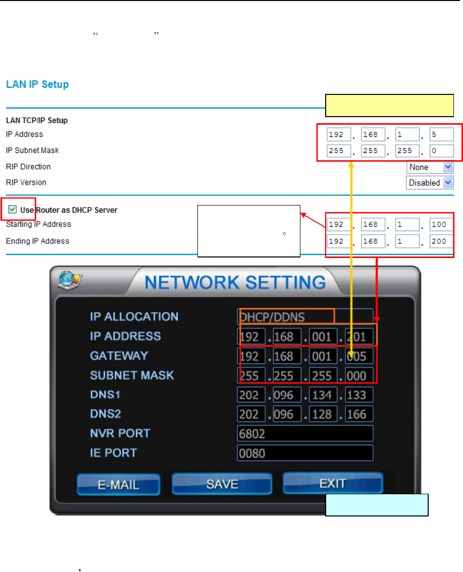 3. Set the IP item as DHCP/DDNS in network setup menu in NVR. If the DHCP in the router is open, the