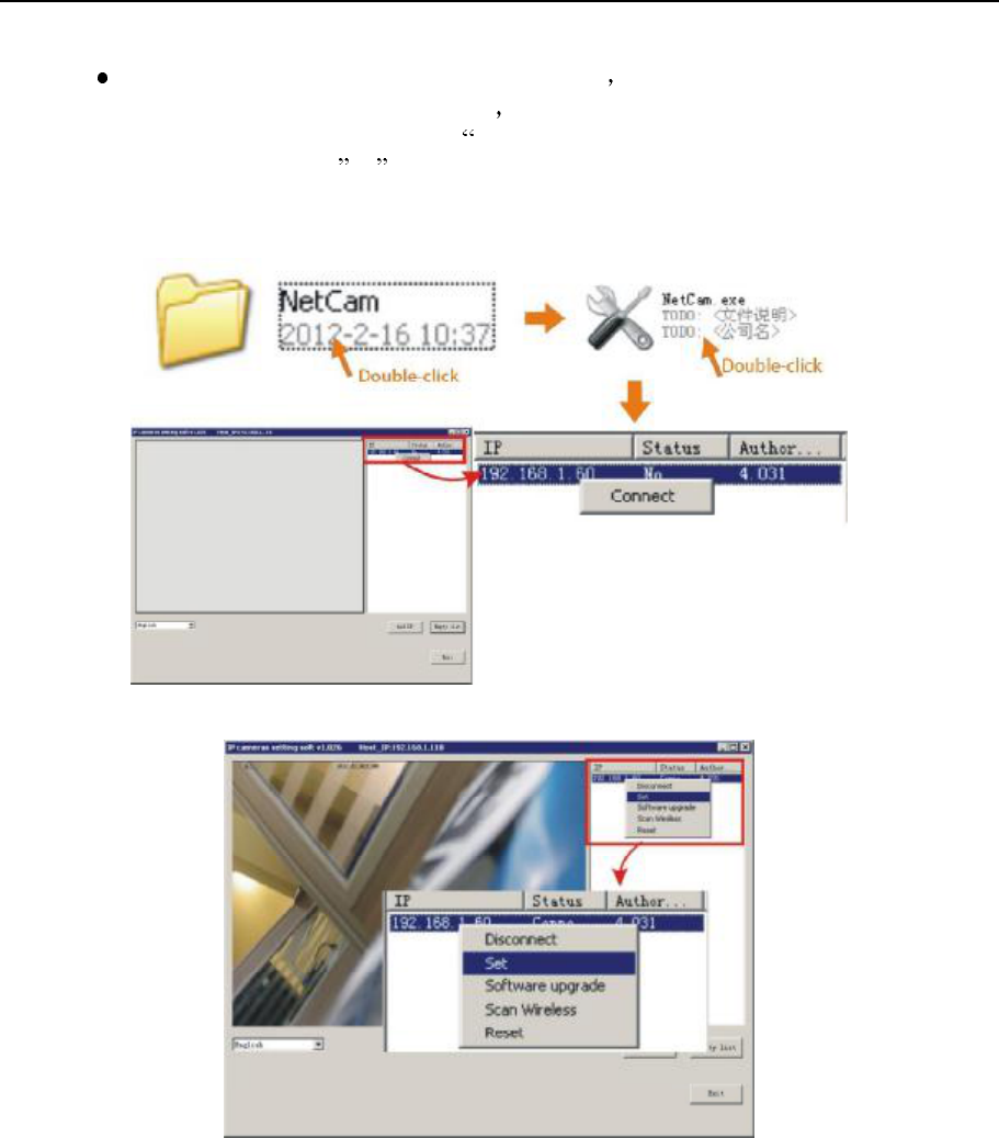 IPCAM connected to PC via net cable PC set to a fixed IP PC IP could be set