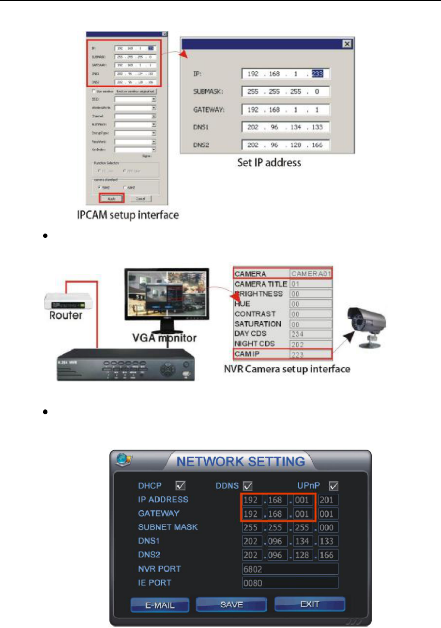 The IP of IPCAM could be set in Camera setting menu in NVR.