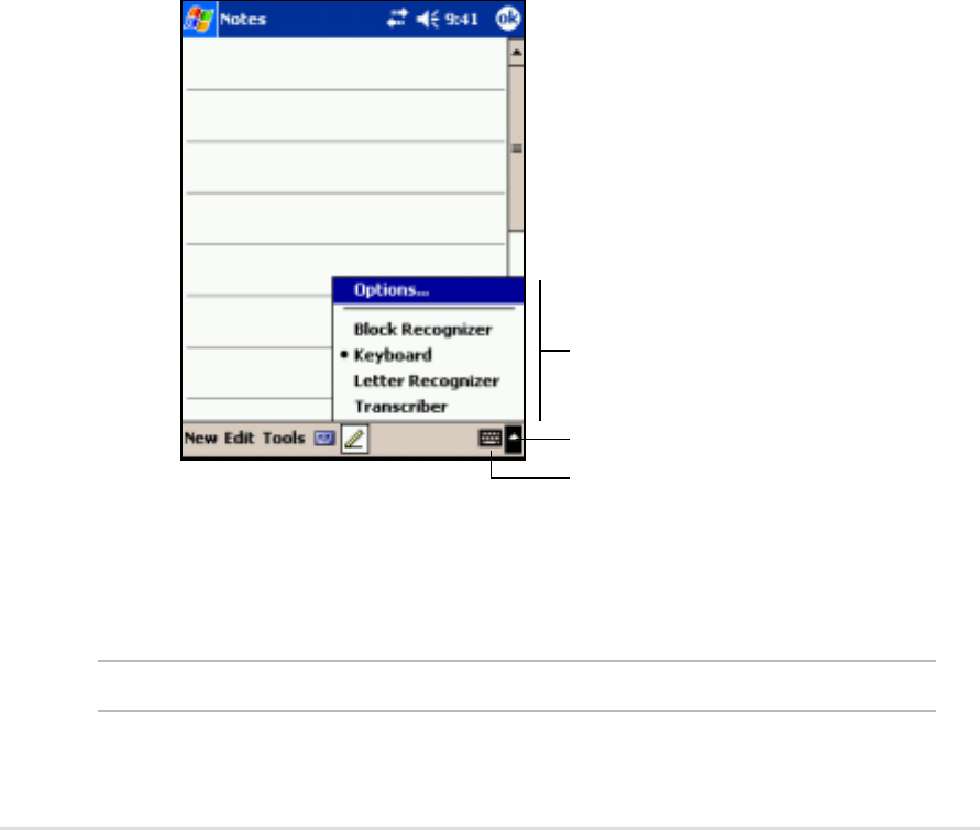 •Use the input panel to enter text using the soft keyboard or the Letter