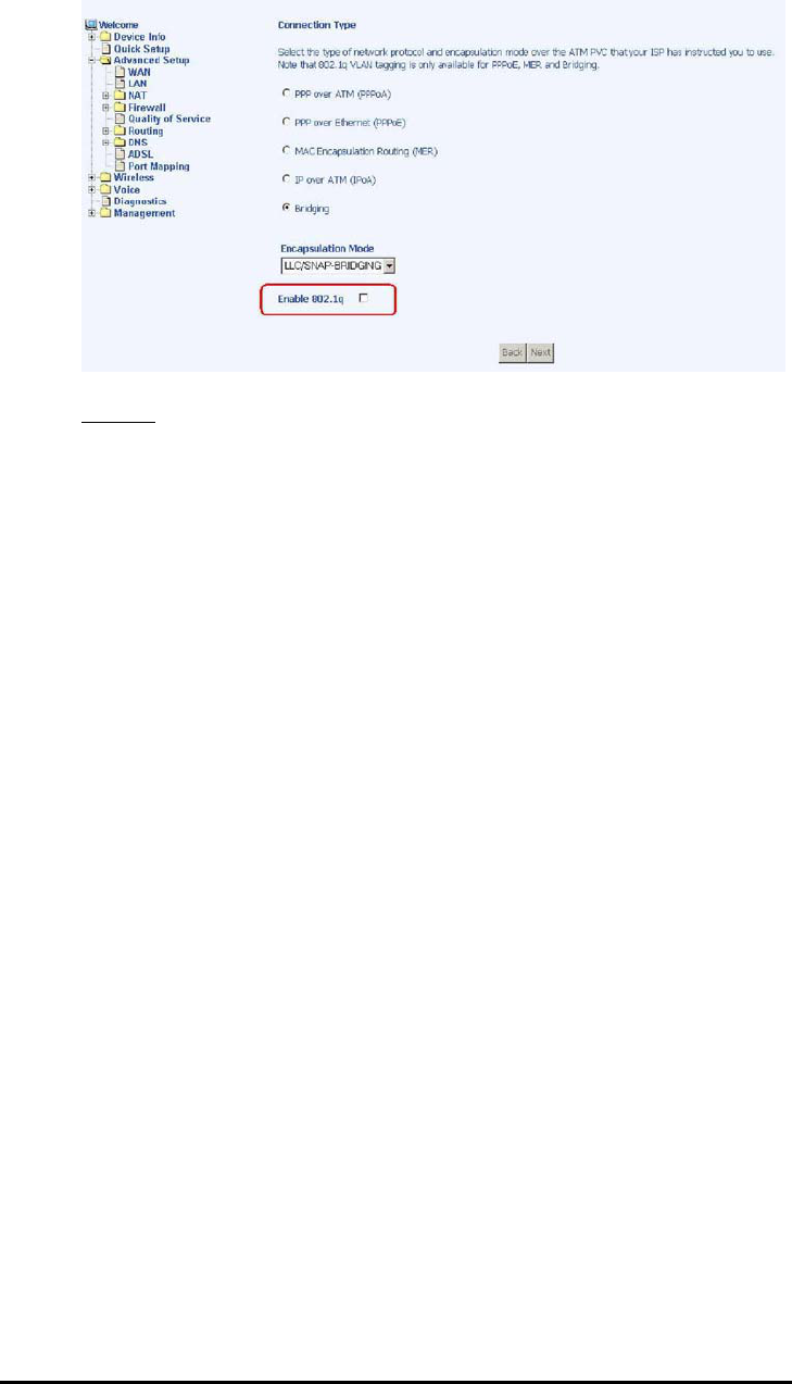 •Mark 802.1p if 802.1q is enabled on WAN— (see below ”Connection