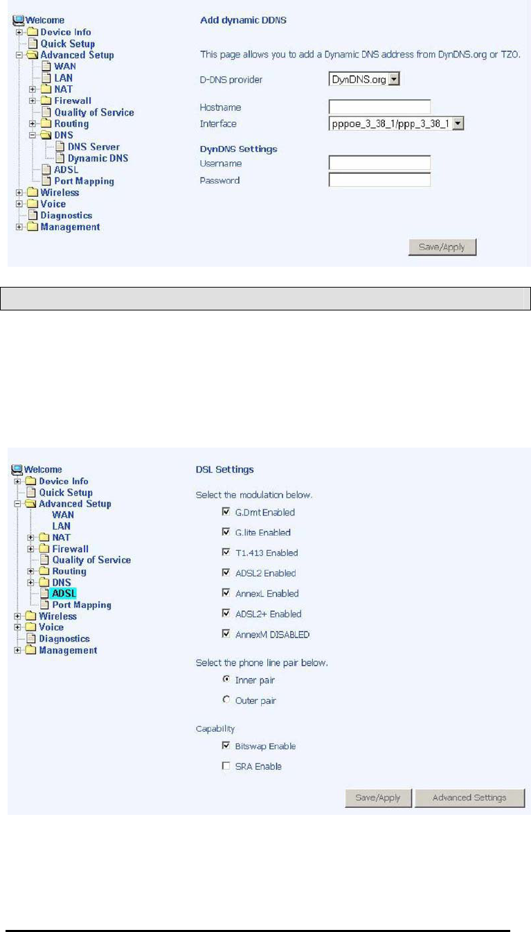 list—DynDNS.org or TZO. Enter the hostname and the ADSL