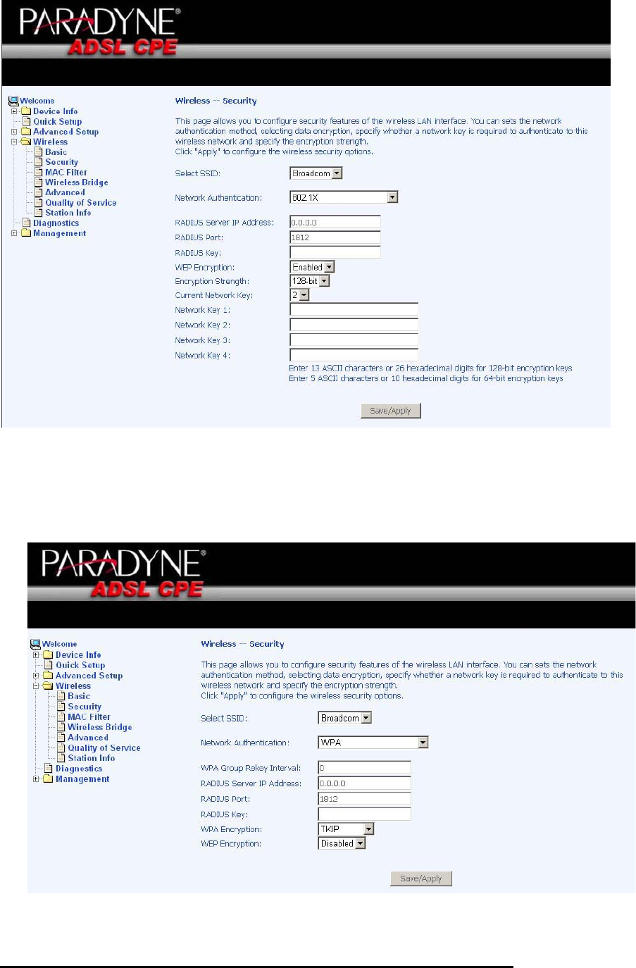 gateway to be enabled. Click the Save / Apply button to enable or disable this