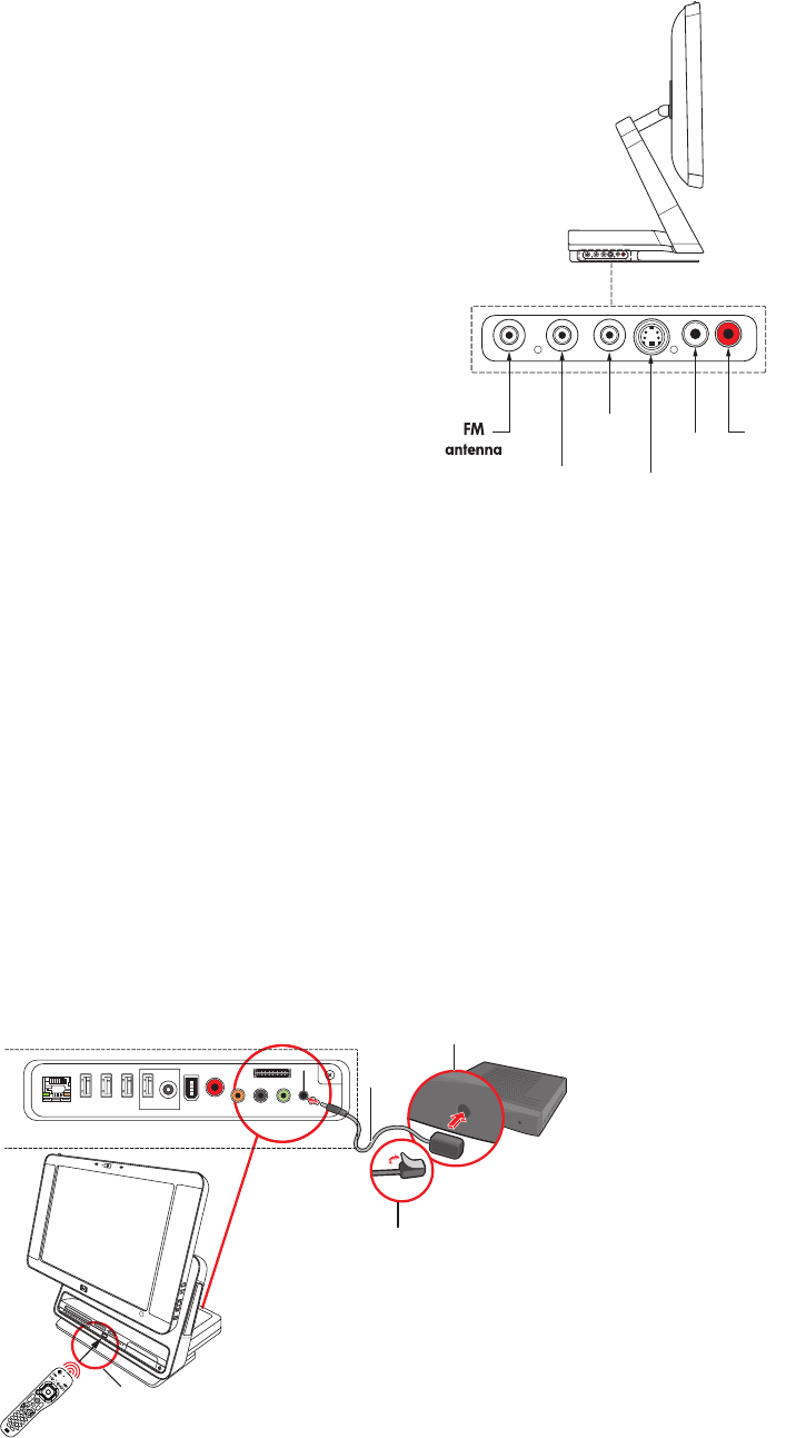The remote infrared emitter cable is a small device that connects to the HP TouchSmart PC at the IR Out