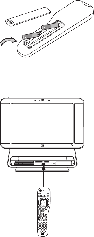 Point the remote control at the remote control sensor at the front of the HP TouchSmart PC, and press a