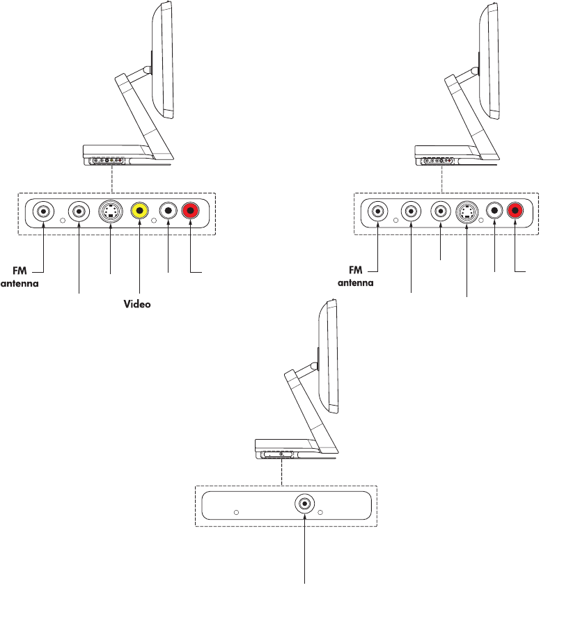 FM antenna, TV In, HDTV/ATSC, S-Video, left and right audio connectors