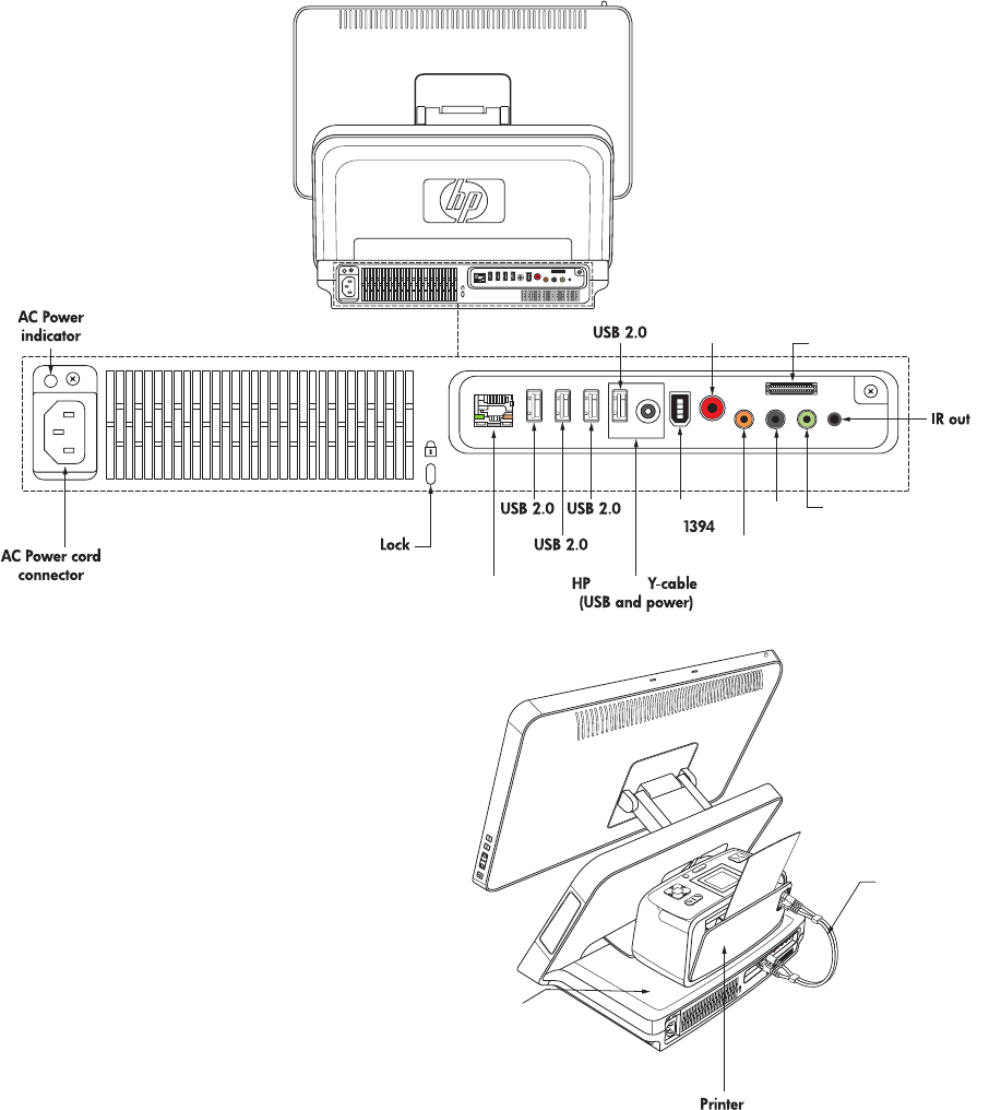 NOTE: If using the HP printer (USB and power) Y-cable to connect the HP printer to the HP TouchSmart PC,