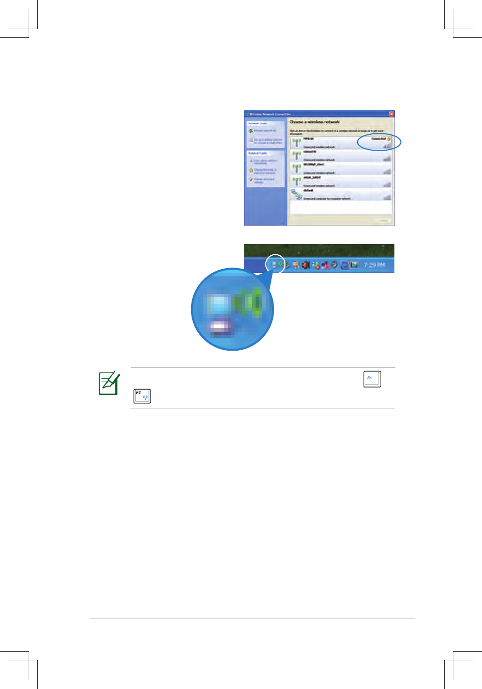 (<Fn> + <F2>) before configuring a wireless network connection.