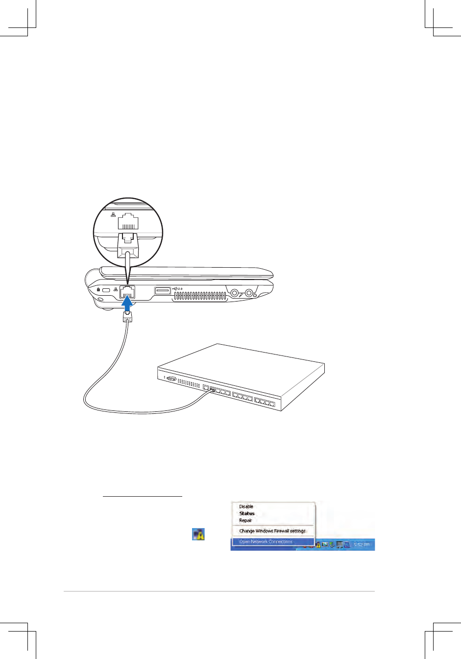 example of your Eee PC connected to a network hub or switch for