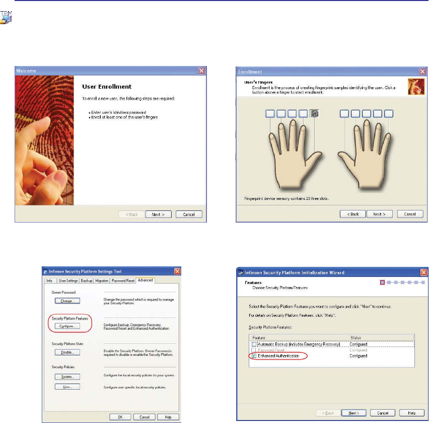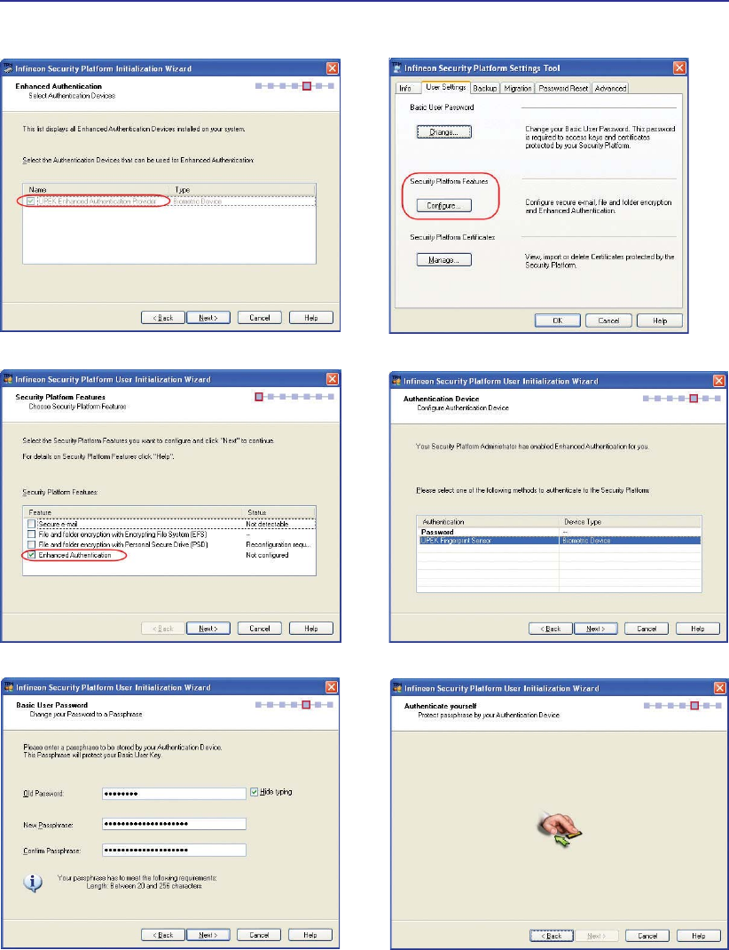 7. Check the Enhanced Authentication and Next. 8. Select the UPEK Fingerprint Sensor and Next.