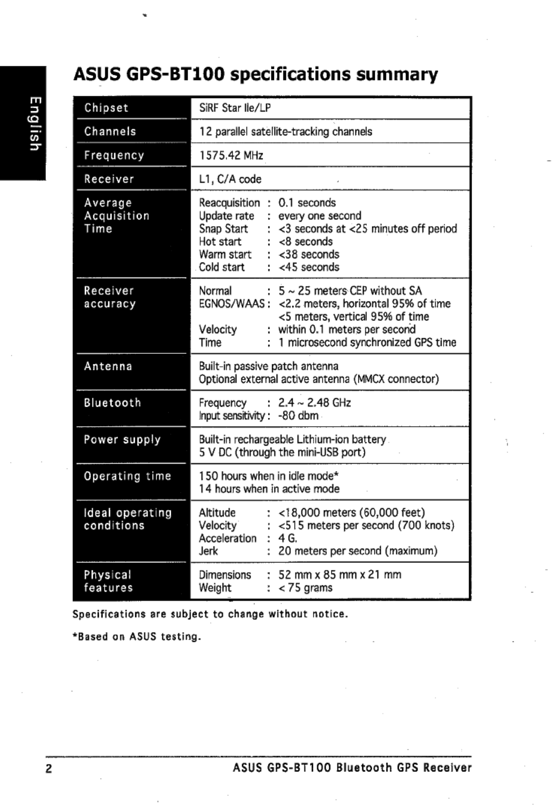 ASUSTeK Computer GPSBT100 ASUS BLUETOOTH GPS RECEIVER User Manual 2 XDW