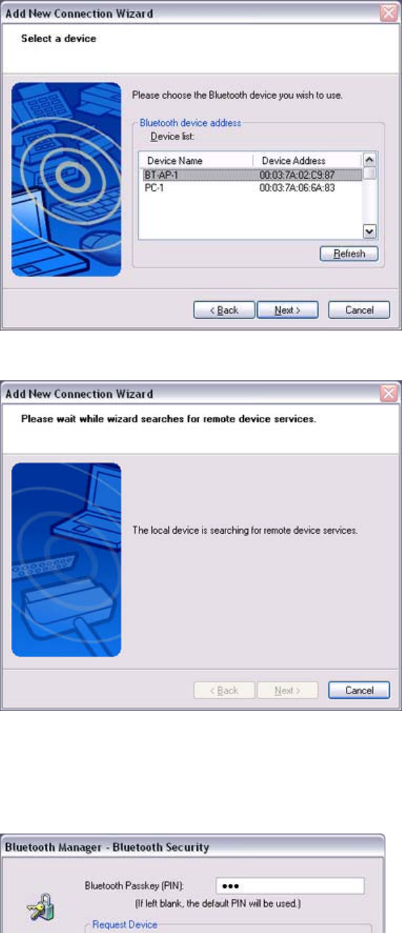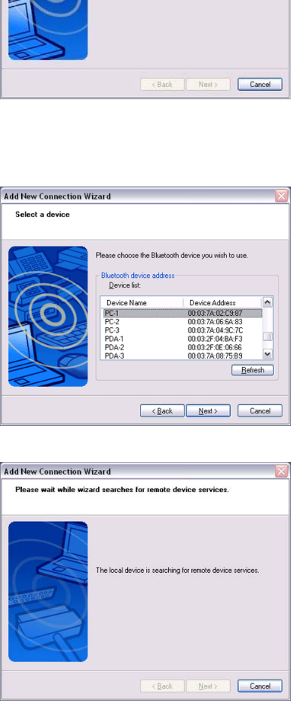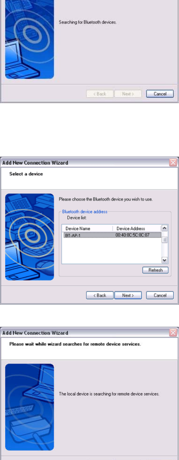 The [Add New Connection Wizard (Searching for Bluetooth devices)] window will
