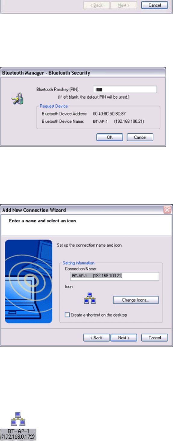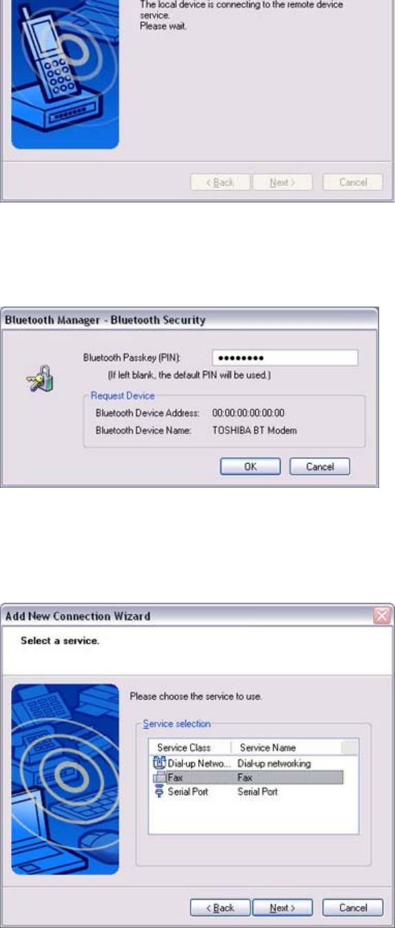 5. If you are connecting to a mobile telephone for the first time, enter the passkey for the